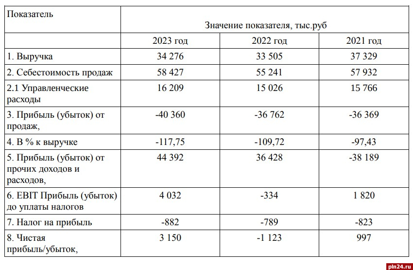 Выручка за прошлый год составила 34 млн 276 тысяч рублей (за 2022 год – 33 млн 505 тысяч рублей, за 2021 год – 37 млн 329 тысяч рублей).