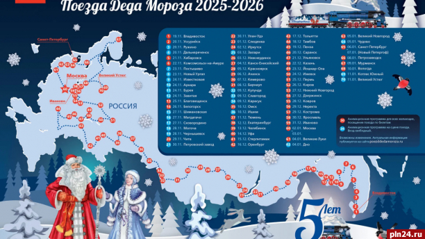 Псков не войдёт в маршрут поезда Деда Мороза в этом году