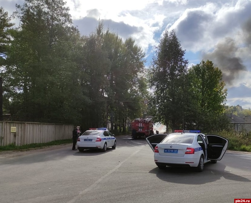 Автомобиль горит на улице Лесной в Пскове. Об этом Псковской Ленте Новостей сообщил очевидец.
