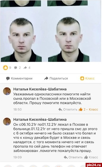 Мать Валентина Киселева 2000 года рождения сообщила, что с 6 октября по 1 декабря 2021 года он лежал в больнице в Пскове. Затем, 1 декабря, молодой человек написал матери сообщение о том, что к концу декабря приедет в Москву, и связь с ним наладится. Однако больше он не появился, а телефон с тех пор выключен.