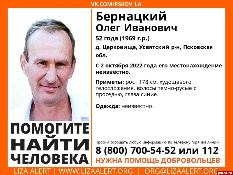 52-летнего Олега Бернацкого продолжают искать в деревне Церковище Усвятского района. Об этом сообщается в группе регионального отделения поискового отряда «ЛизаАлерт» в социальной сети «ВКонтакте».