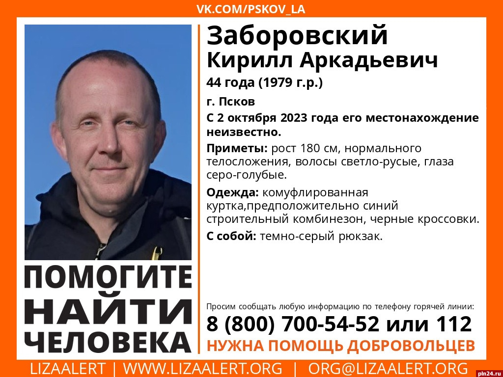44-летний Кирилл Заборовский пропал в Пскове. Об этом сообщается в группе регионального отделения поискового отряда «ЛизаАлерт».
