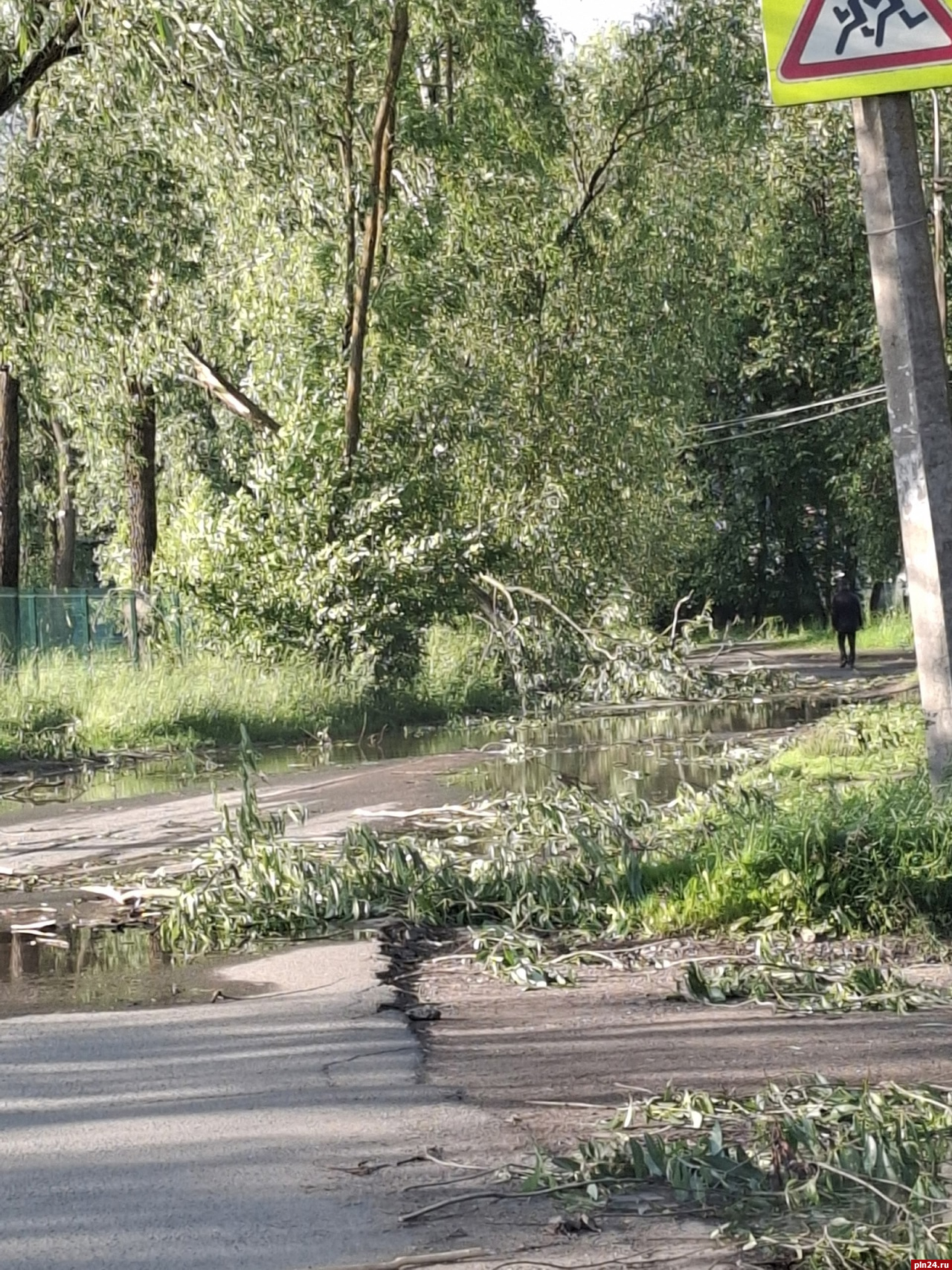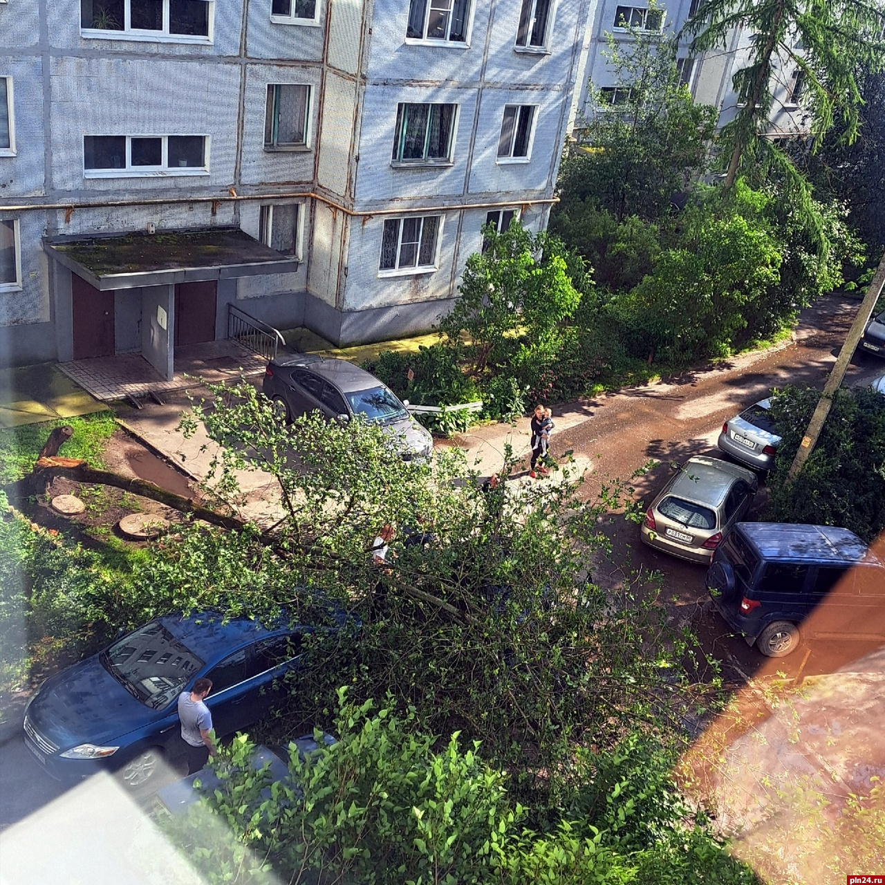 Также несколько деревьев упали возле Лицея №4 на улице Коммунальной, 30, сообщил очевидец в группе «Жесть по-псковски».