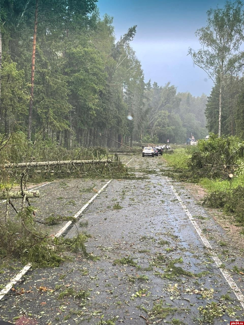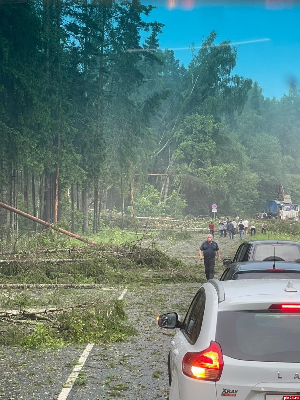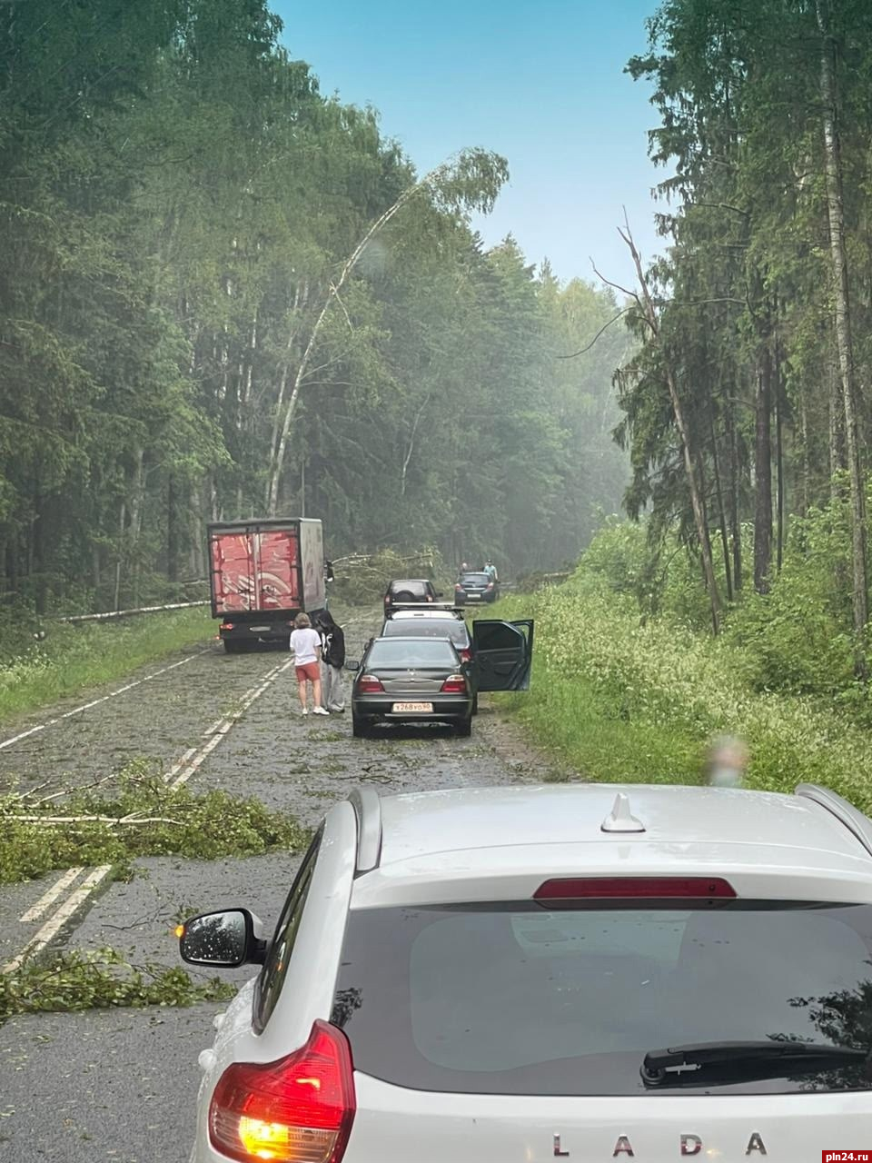 Трасса Великие Луки - Невель завалена деревьями, что затрудняет движение автомобилей.