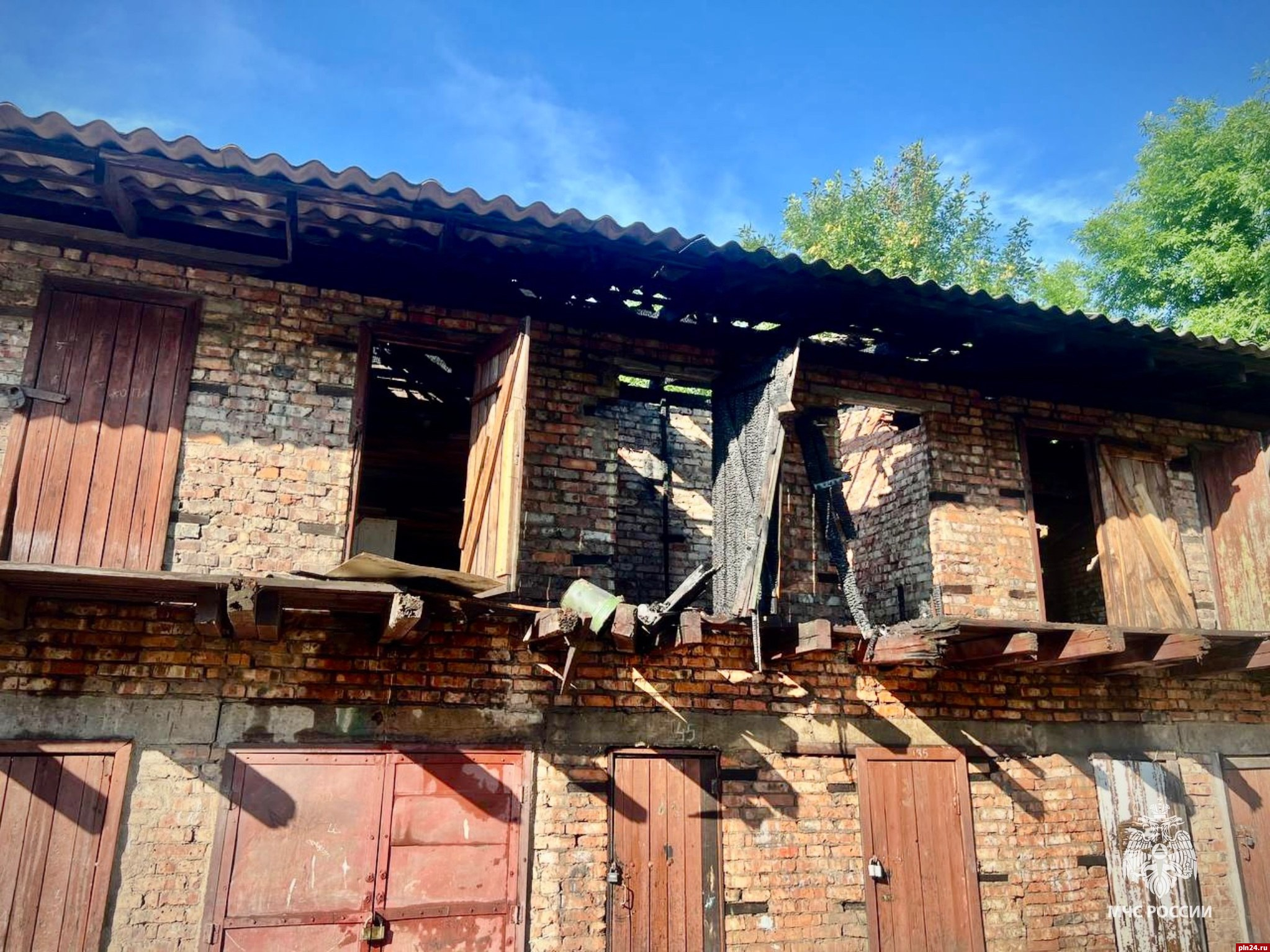 Сообщение о возгорании поступило в 17:10. В здании выгорело изнутри два помещения. Предположительной причиной стало неосторожное обращение с огнем.