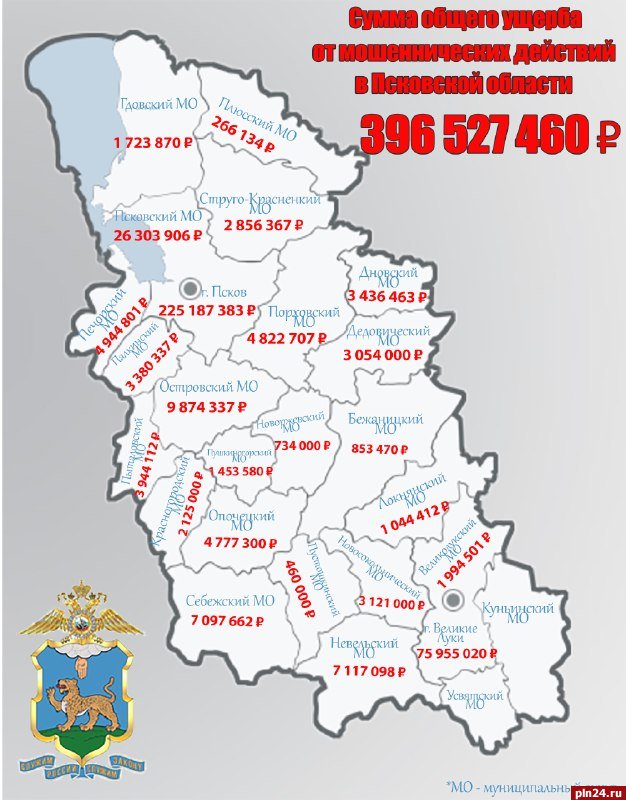 В Псковской области сохраняется тревожная ситуация с мошенничеством. Карта происшествий региона наглядно иллюстрирует масштабы проблемы: жители области регулярно становятся жертвами преступных схем, которые продолжают проявляться в новых формах. Суммарный ущерб от мошенничества достиг колоссальной цифры - 396 527 460 рублей. Об этом Псковской Ленте Новостей сообщили в пресс-службе УМВД России по Псковской области.