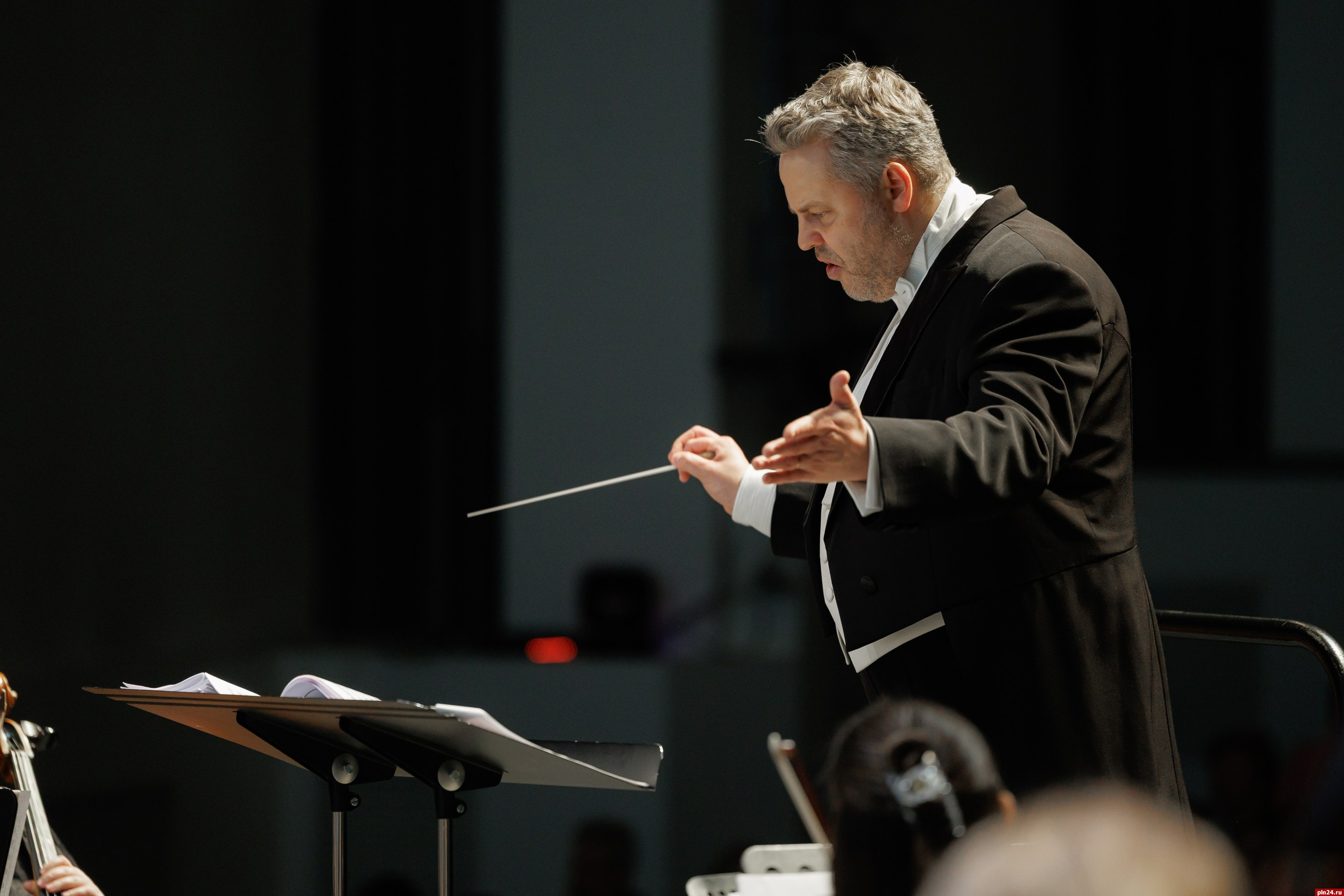 Эмоционально выверенное прочтение музыкальных текстов псковичам предложил дирижер из Санкт-Петербурга Сергей Семишкур. Его появление в составе коллектива на сцене областной филармонии в новом, 82-м сезоне, анонсировал главный дирижёр и художественный руководитель Губернаторского симфонического оркестра Алексей Репников на пресс-конференции в начале осени. Сергей Семишкуров — солист оперной труппы Мариинского театра, тенор. Выпускник Нижегородской государственной консерватории имени М. И. Глинки (факультеты хорового дирижирования и академического пения), в этом году он оканчивает Санкт-Петербургскую государственную консерваторию. Классический сдержанный стиль дирижера стал одним из бесспорных плюсов концерта-посвящения, подчеркнув проникновенность лирических тем без излишней сентиментальности и внешних акцентов.