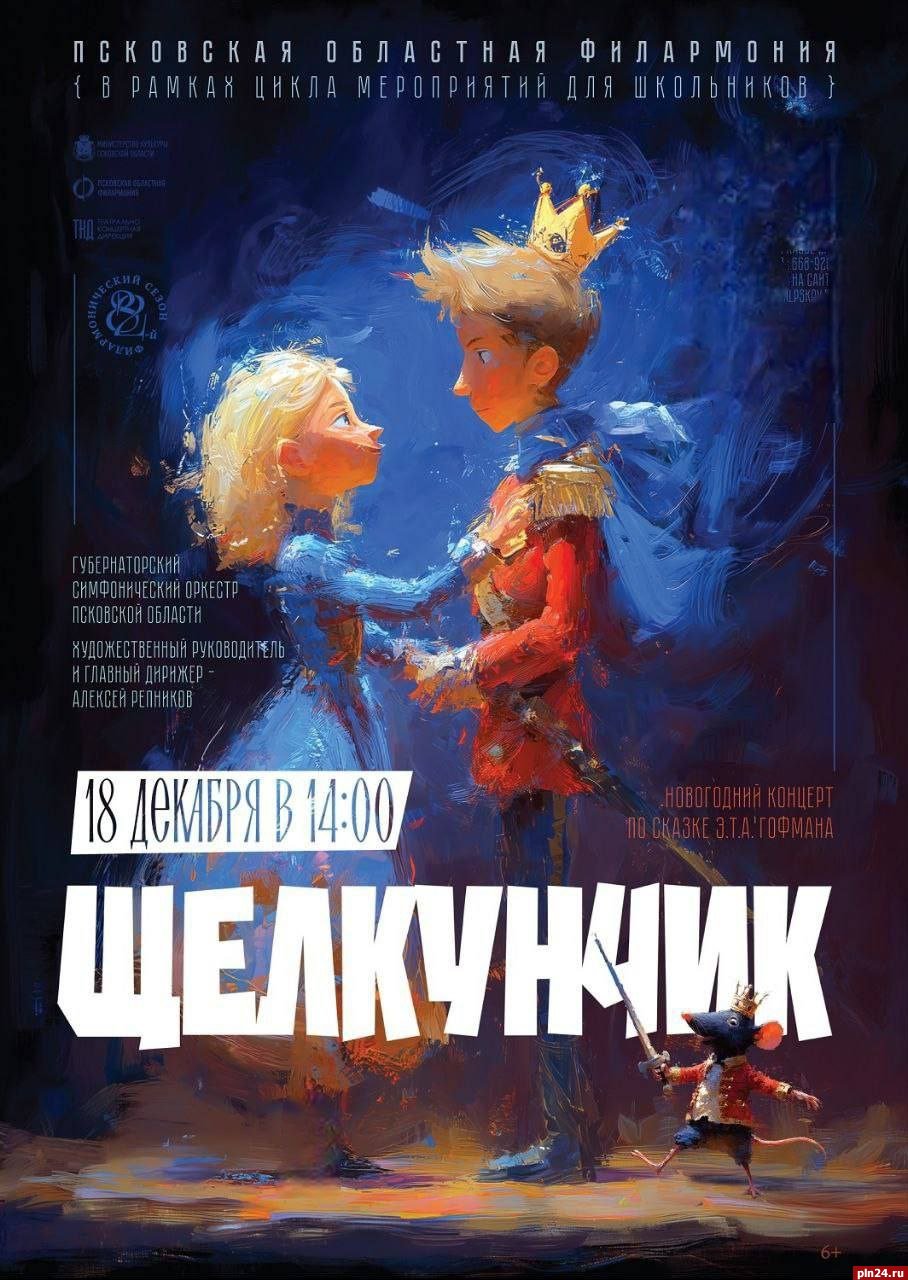 В Большом концертом зале псковской филармонии 18 декабря состоится новогодний концерт «Щелкунчик» по мотивам сказки Э.Т.А. Гофмана, сообщили Псковской Ленте Новостей в пресс-службе Театрально-концертной дирекции Псковской области.