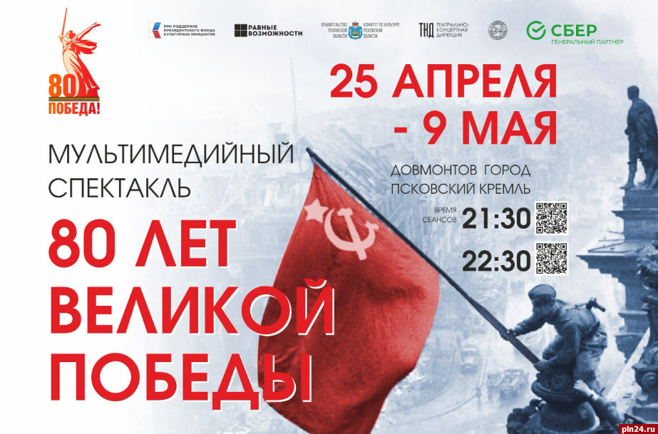 С 25 апреля по 9 мая на территории Псковского кремля пройдут показы мультимедийного спектакля, посвященного 80-летию Великой Победы. Крепостная стена Довмонтова города станет огромным экраном, на котором благодаря мультимедийным технологиям оживет история о Знамени Победы, которое водрузили над Рейхстагом 30 апреля 1945 года воины 150-й дивизии, 79-го стрелкового корпуса, 3-й ударной армии Михаил Егоров и Мелитон Кантария. Об этом Псковской Ленте Новостей сообщили в пресс-службе Театрально-концертной дирекции Псковской области.
