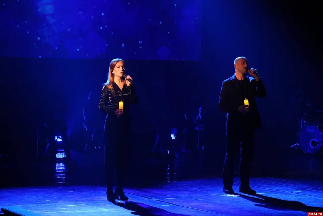 Открылись гастроли 25 и 26 сентября показами спектакля-концерта к юбилею Победы «Глядя в небеса…» в постановке заслуженного деятеля искусств России Дмитрия Месхиева. Его литературной основой стали подлинные исторические документы – солдатские письма 1941-45 годов, в основном написанные псковичами и жителями Псковской области. Также в спектакле прозвучали стихи Давида Самойлова, Юлии Друниной, Ольги Берггольц, Константина Ваншенкина, Роберта Рождественского. Актеры и музыканты театра исполнили песни военных лет и другие музыкальные произведения, посвященные войне и Победе.