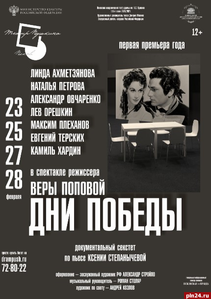 Псковский академический театр драмы имени А. С. Пушкина представил афишу мероприятий на праздничные дни 21, 22 и 23 февраля.