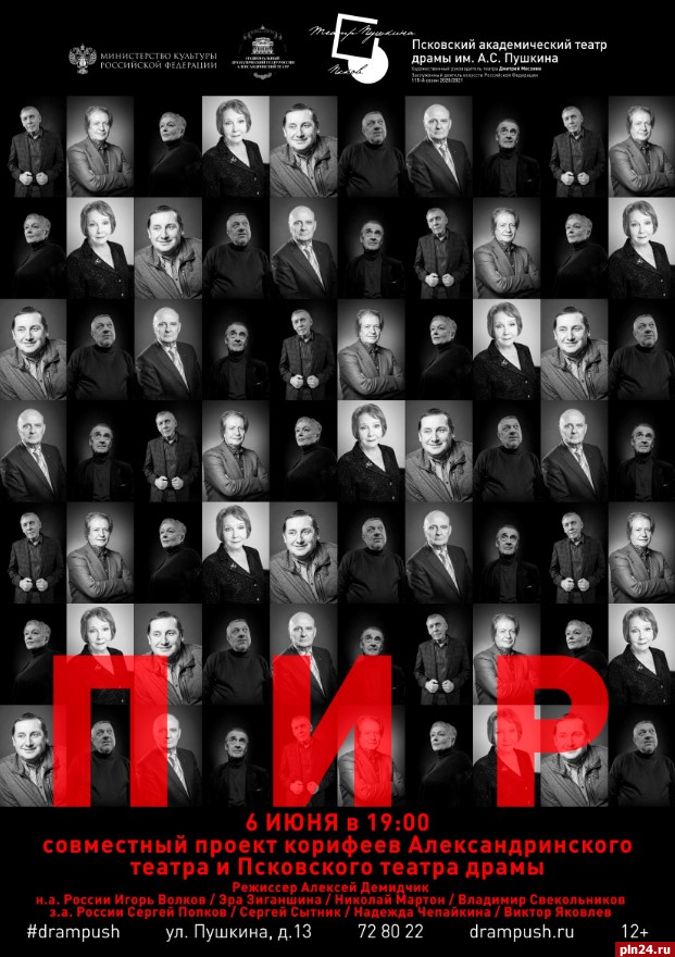 Премьера спектакля «Пир» состоится на большой сцене Псковского театра драмы 6 июня, в день 222-летней годовщины со дня рождения Пушкина.