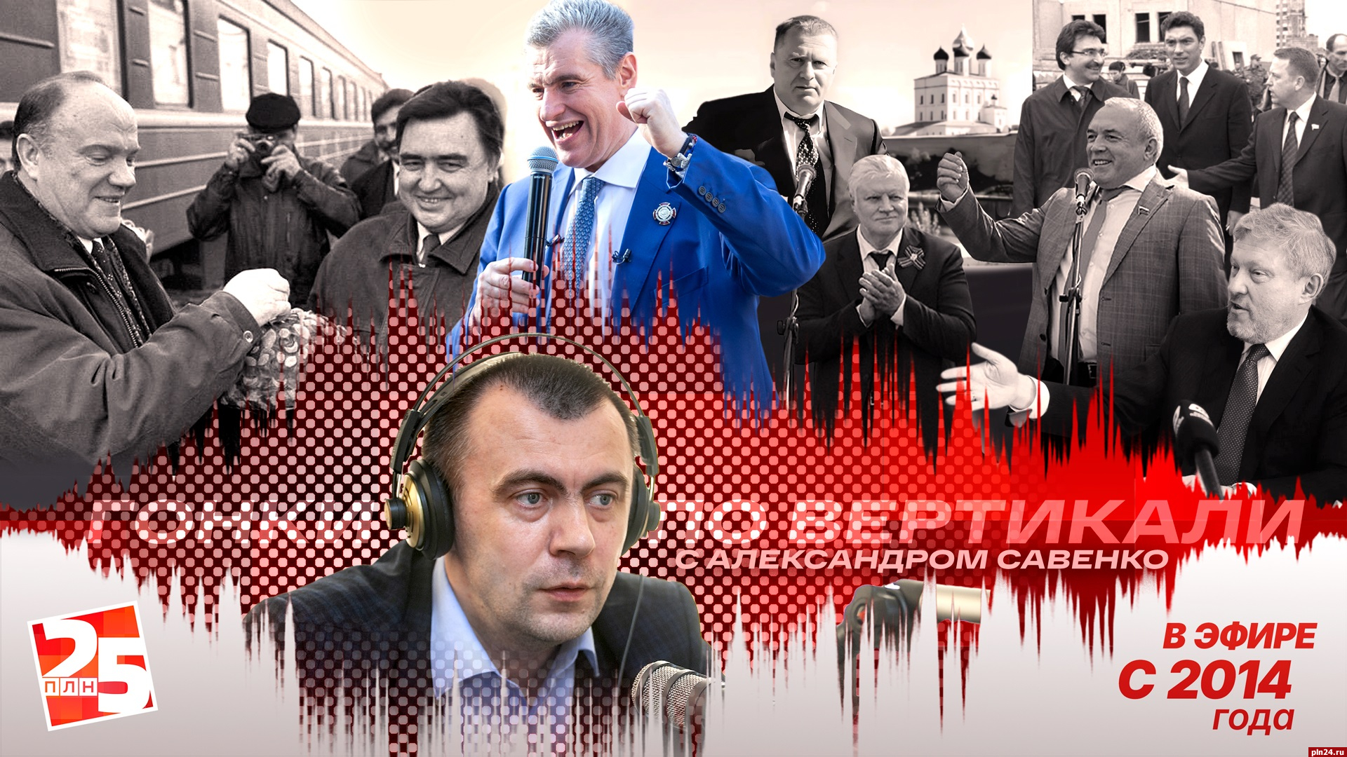 Впрочем об этом чуть позже, а вначале я хотел бы напомнить, что в последние полтора десятилетия приезд в Псков партийных лидеров федерального уровня — событие крайне редкое. Это в девяностые и нулевые боссы ведущих политических сил часто бывали в нашем регионе — встречались с избирателями, агитировали, оценивали работу псковских отделений своих партий. Кстати, у меня за спиной на студийной плазме - коллажик с фотографиями некоторых визитов прошлого: тут и хлеб-соль лидеру КПРФ Геннадию Зюганову на перроне псковского вокзала, рядом экс-первый секретарь обкома Владимир Никитин. А вот эсер Сергей Миронов с еще старшим Брячаком — Михаилом Васильевичем. Есть тут и другие партийные лидеры, которые бывали у нас неоднократно.