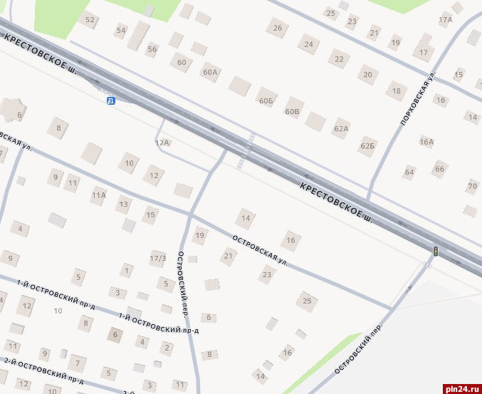 Как сообщал в феврале глава Пскова Борис Елкин, в этом году по решению комиссии по безопасности дорожного движения на перекрёстке Крестовского шоссе с Островским переулком будет оборудован регулируемый пешеходный переход через шоссе.