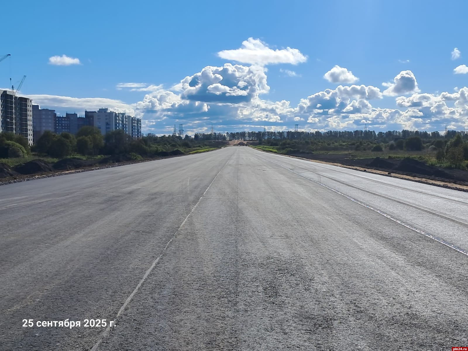 Масштабный проект включает в себя 4-полосную магистраль, 2 транспортные развязки в разных уровнях, 6 путепроводов и новый мост через реку Великую протяженностью более 400 пог. м, который станет крупнейшим в регионе.
