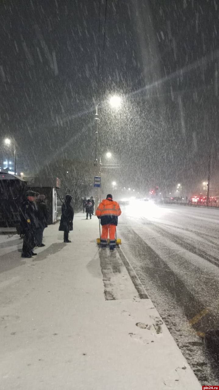 Сотрудники ООО «СитиИнвестГрупп» ликвидируют последствия снегопада в городе Пскове. Об этом Псковской Ленте Новостей сообщили в компании.