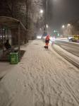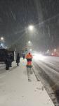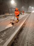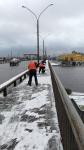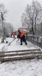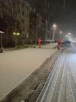 Специалисты с помощью техники, а также вручную убирают снег с проезжей части и тротуаров.