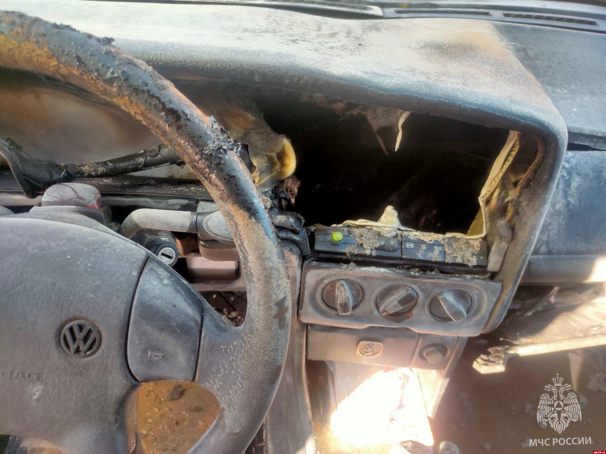 В 15:12 поступило сообщение о возгорании легкового автомобиля Volkswagen Passat 1994 года выпуска на улице Ленина в Опочке. В салоне выгорела передняя панель (торпеда).