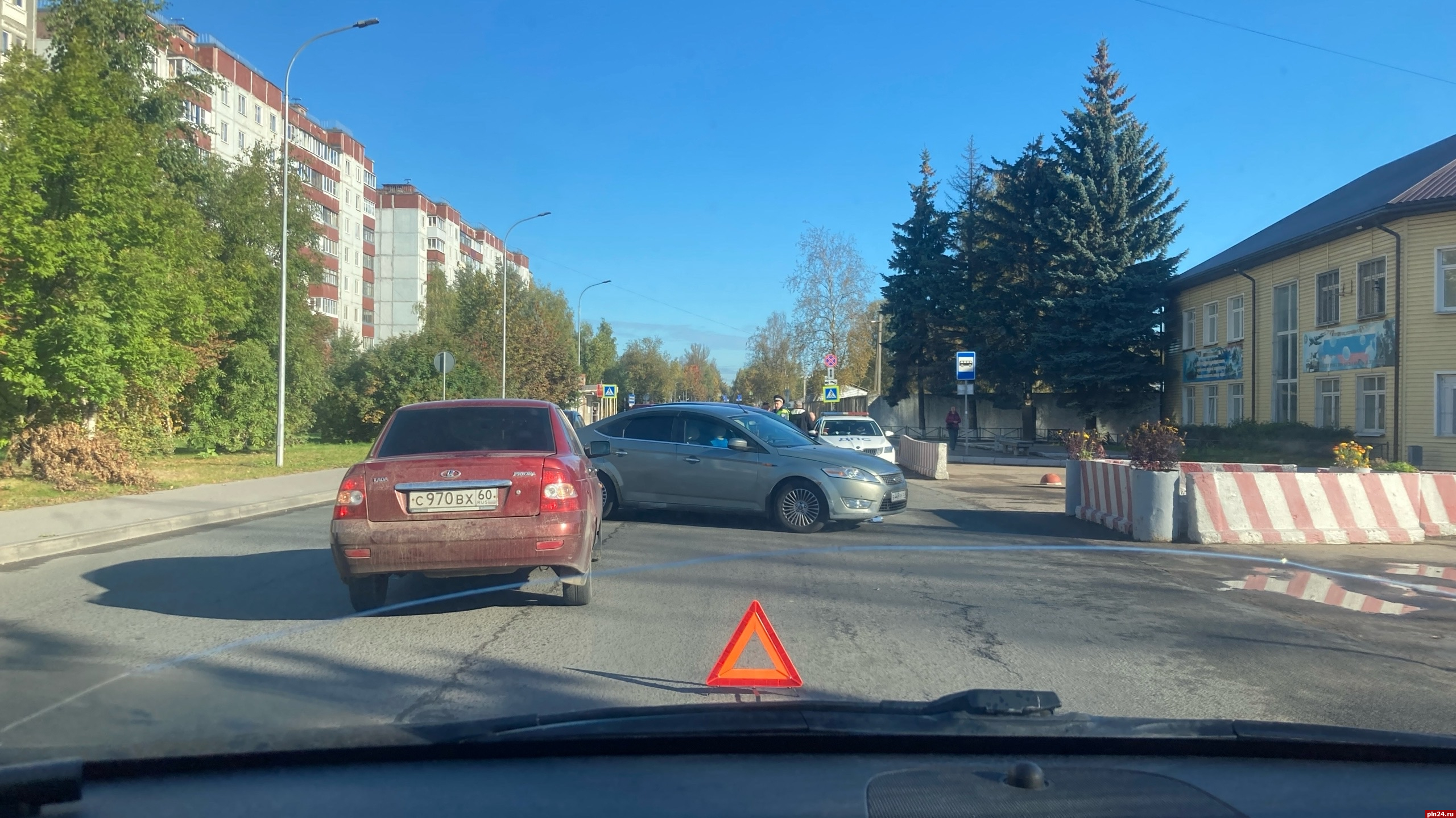 Два автомобиля столкнулись на улице Генерала Маргелова в Пскове, снимки 7 октября Псковской Ленте Новостей прислали очевидцы.