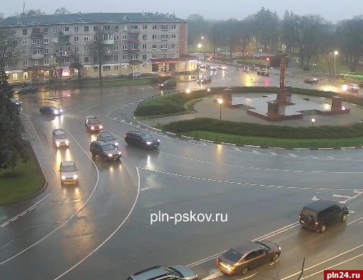 Дорожно-транспортное происшествие произошло в Пскове 4 декабря на площади Победы. Видеокамера Pskovline зафиксировала момент столкновения напротив дома №1 в 16.20.