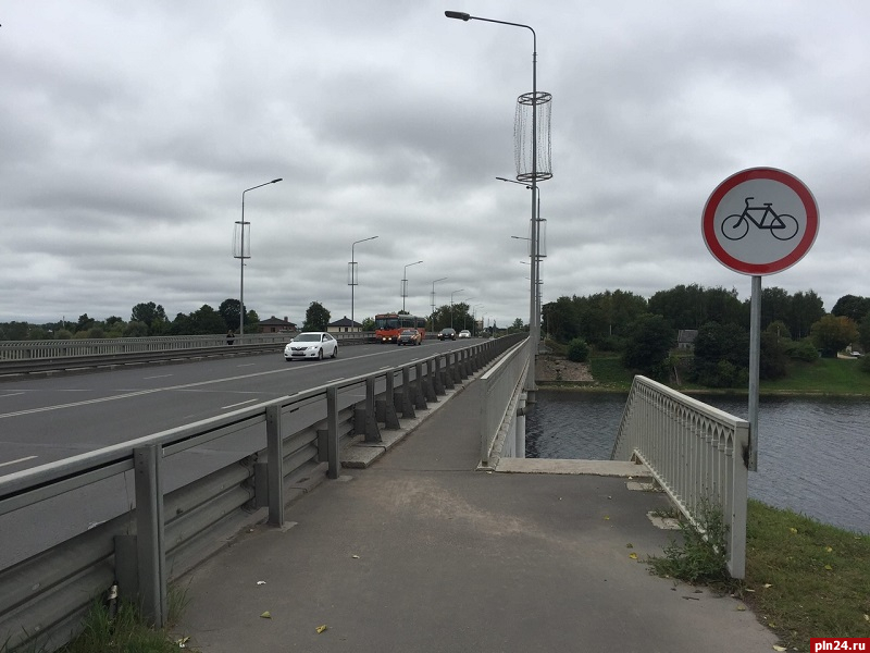 В управлении городского хозяйства администрации Пскова объяснили, почему на тротуарах моста 50-летия Октября через реку Великую установлены дорожные знаки 3.9 «Движение на велосипедах запрещено».