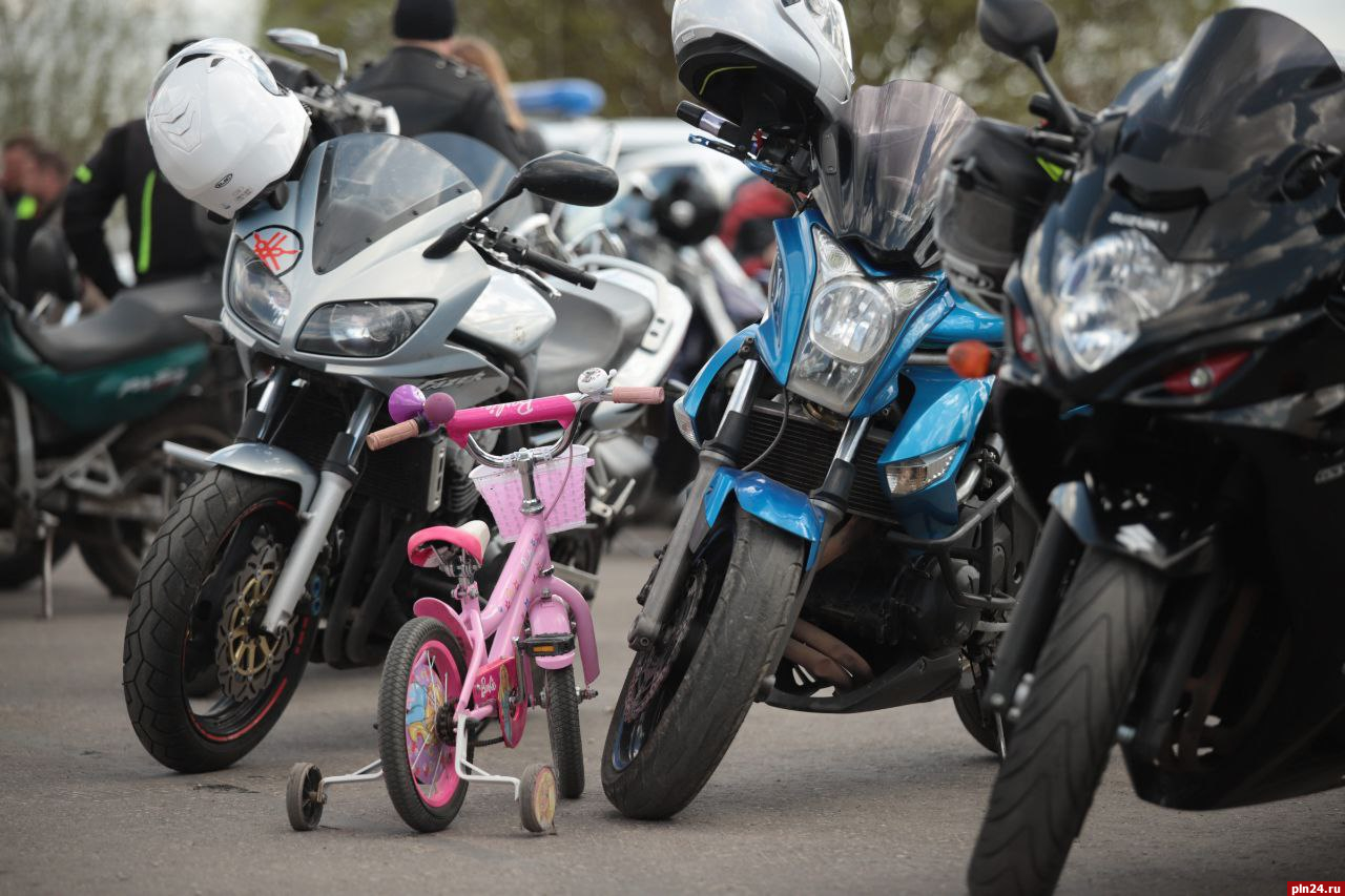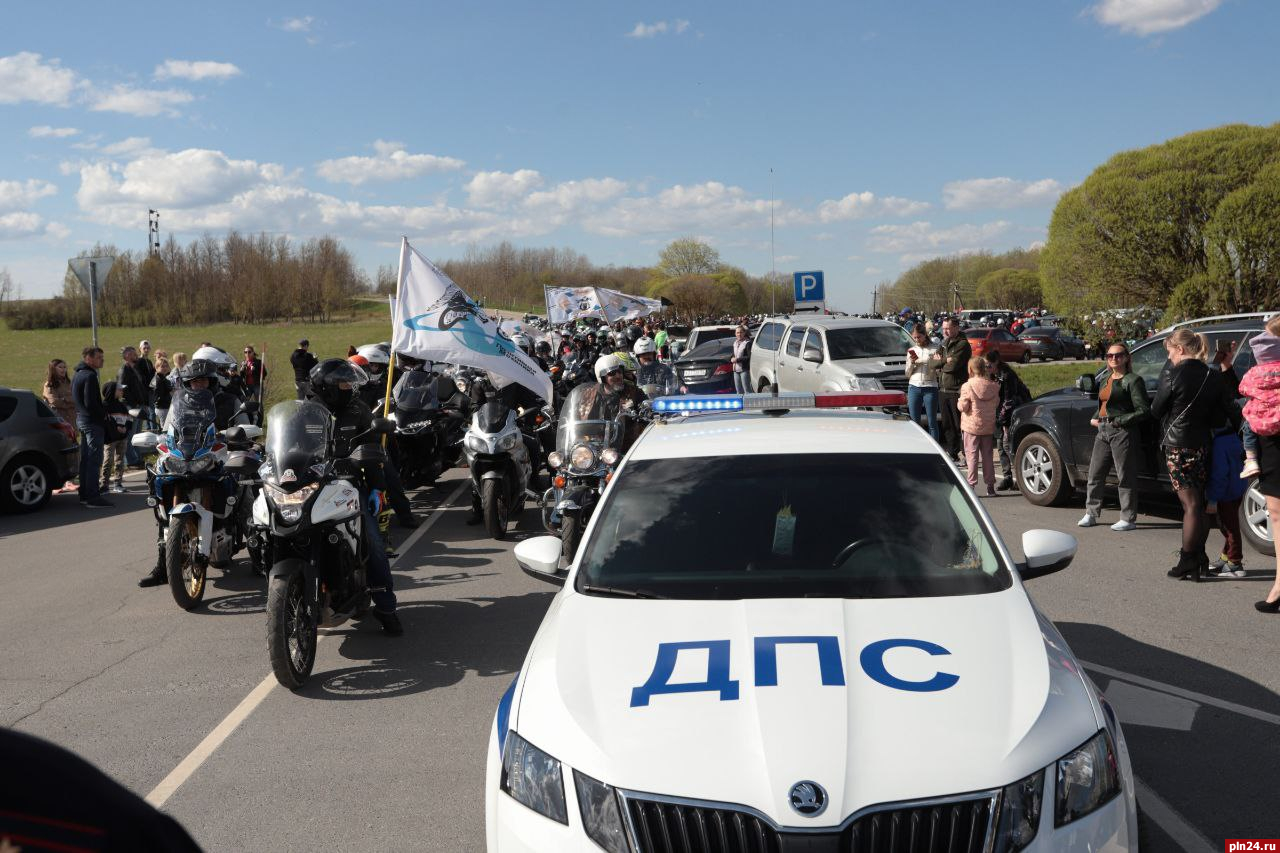 Сотрудники ГИБДД принимают участие в открытии мотосезона в Пскове на патрульных мотоциклах сегодня, 7 мая, передает корреспондент Псковской Ленты Новостей.