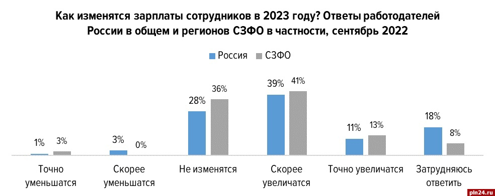 Еще больше трети (36%) опрошенных ответили, что зарплаты их сотрудников скорее всего никак не изменятся. При этом 3% опрошенных работодателей на Северо-Западе заявили, что в их компаниях планируется уменьшение зарплат сотрудников. Для сравнения: в других регионах страны о планах по урезанию зарплат заявили 4% работодателей.