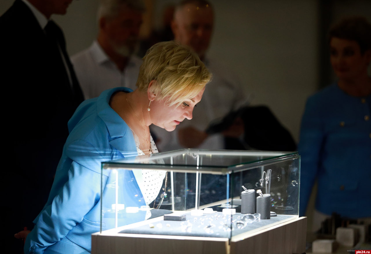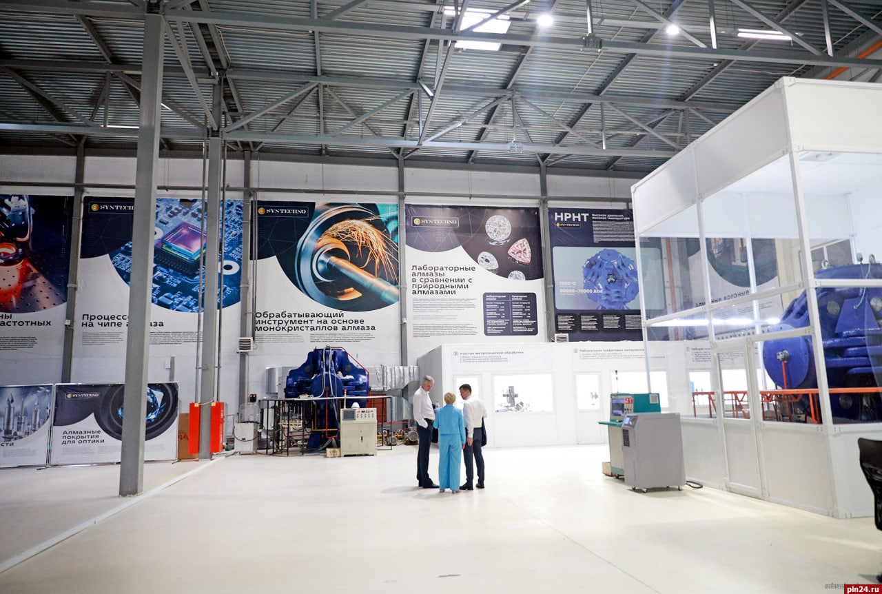 Выращивание синтетических алмазов происходит в специальных прессах – их закупают в Китае и дорабатывают в России, и, как отметила руководитель предприятия, таможенные преференции были ещё одной причиной выбора «Моглино» для развития производства. Екатерина Наговицина рассказала, что качество лабораторного алмаза зависит от 38 переменных, самые важные их которых – давление 70 тысяч атмосфер и температура 1,5 тысячи градусов. Современный пресс позволяет за 10 дней вырастить алмаз в 30 каратов. Продукция псковского предприятия востребована на российском рынке, один из основных заказчиков – корпорация «Росатом».