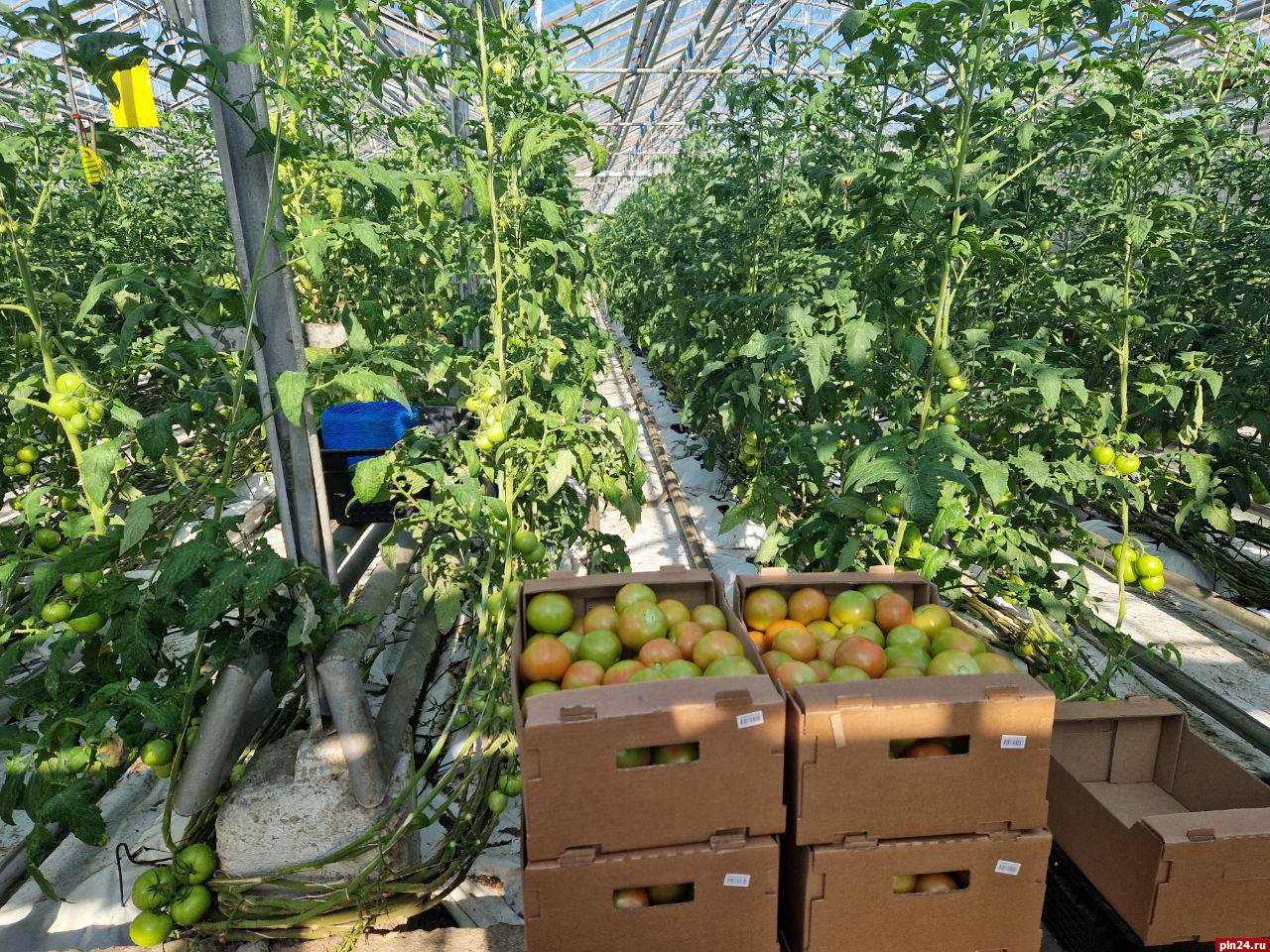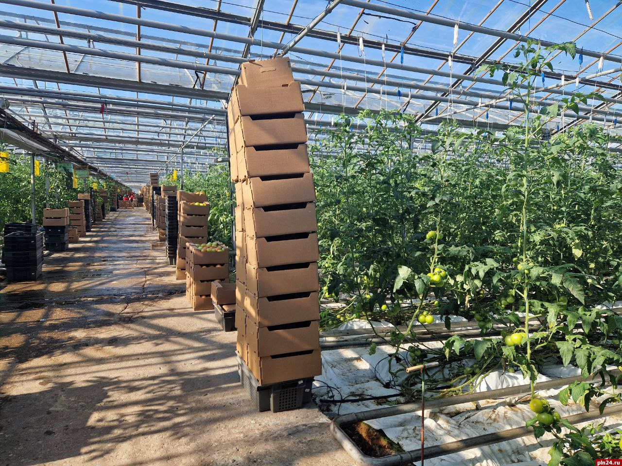 «В связи с тем, что огурец не востребован, мы посадили вторую очередь томатов. 500-600 тонн томатов получим. Картофель уже начали собирать», - сказал генеральный директор, депутат Собрания депутатов Псковского района Виктор Гречин.