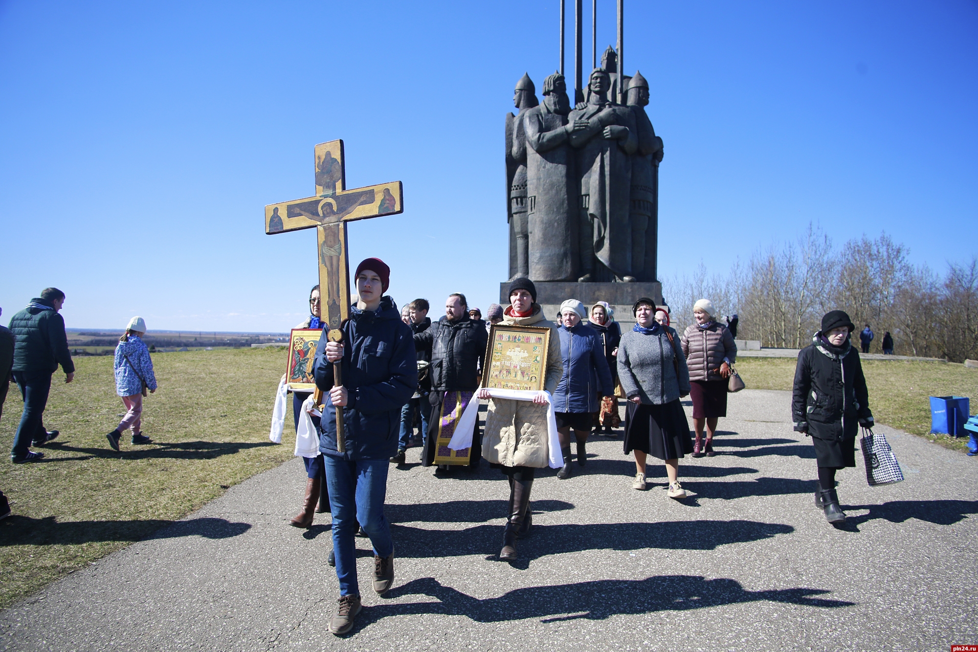 Как сообщили Псковской Ленте Новостей организаторы, в городе ежемесячно священники псковских храмов при содействии паломнического центра Псковской епархии «Вольный странник» проводят крестные ходы, протяженность которых составляет до 50 км. Отправной точкой крестного хода становятся различные церкви города, затем на автобусах крестоходцы отправляются по следующему маршруту: часовня св.Георгия Победоносца в Черехе, памятник павшим в Чечне, храм св.мучениц Веры, Надежды и Любови в Крестах, монумент св.Александру Невскому на горе Соколиха, храм Воскресения Христова в Орлецах, после чего участники возвращаются в храм, с которого начинался крестный ход. По ходу движения горожане читают молитвы и акафисты. Продолжительность крестных ходов - приблизительно 3-4 часа.