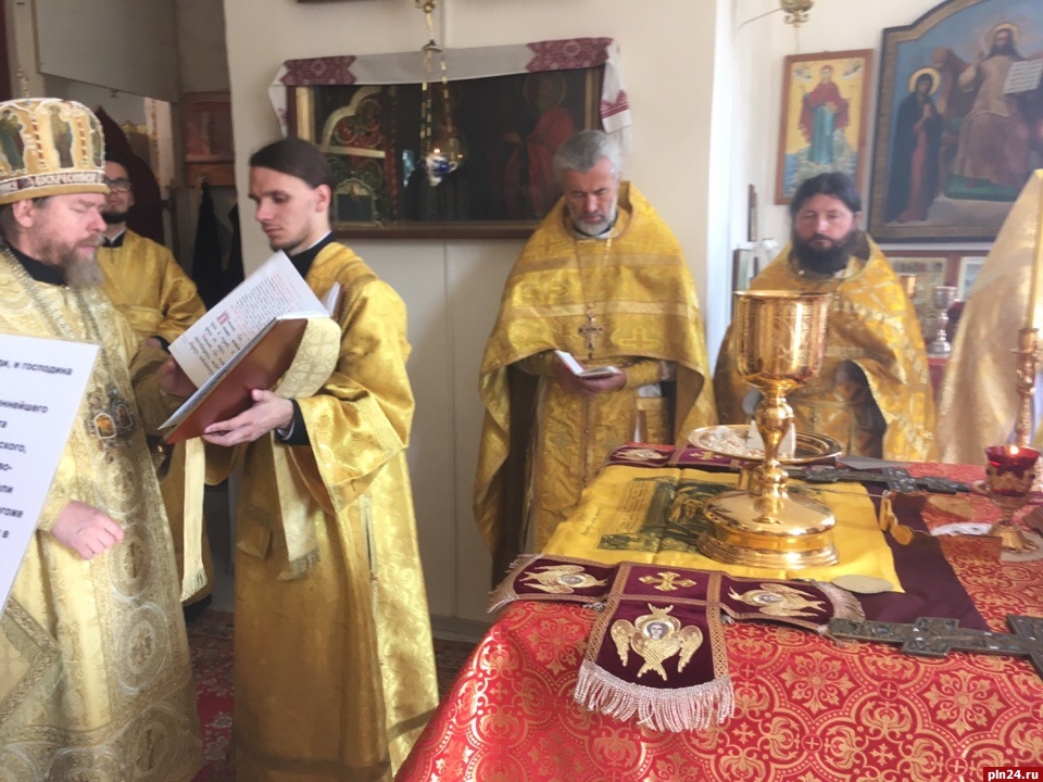 Его Высокопреосвященству сослужили: игумен Савва (Комаров), наместник Иоанно-Богословского Савво-Крыпецкого монастыря; протоиерей Андрей Вахрушев, секретарь Псковского епархиального управления; протоиерей Георгий Быков, благочинный храмов Псковского района; игумен Паисий (Гидраш), настоятель храма святителя Николая на острове Талабск; иерей Сергий Демидов, настоятель храма святых апостолов Петра и Павла на острове Верхний; иеромонах Иларион (Карандеев), насельник Свято-Успенского Псково-Печерского монастыря.