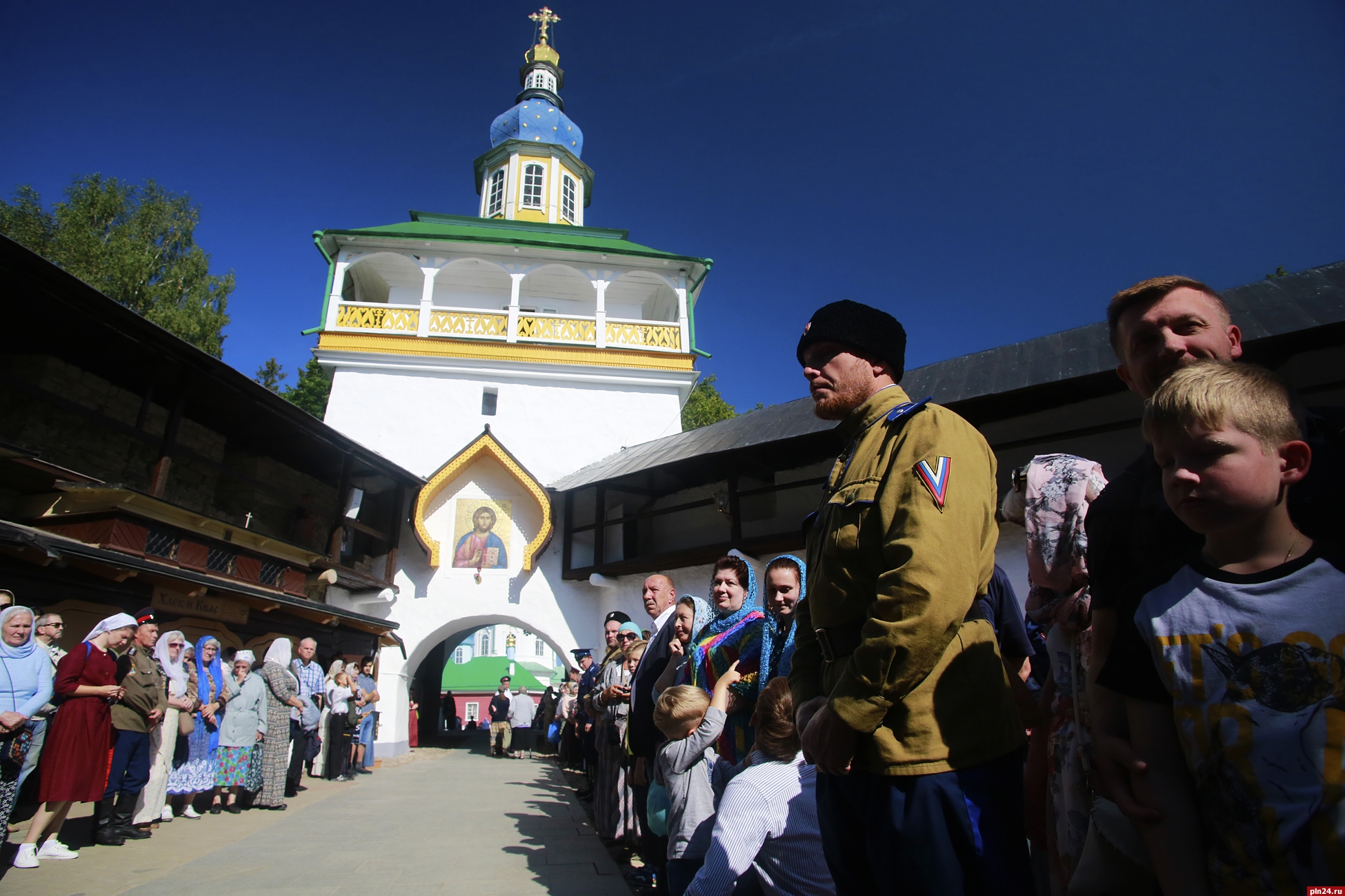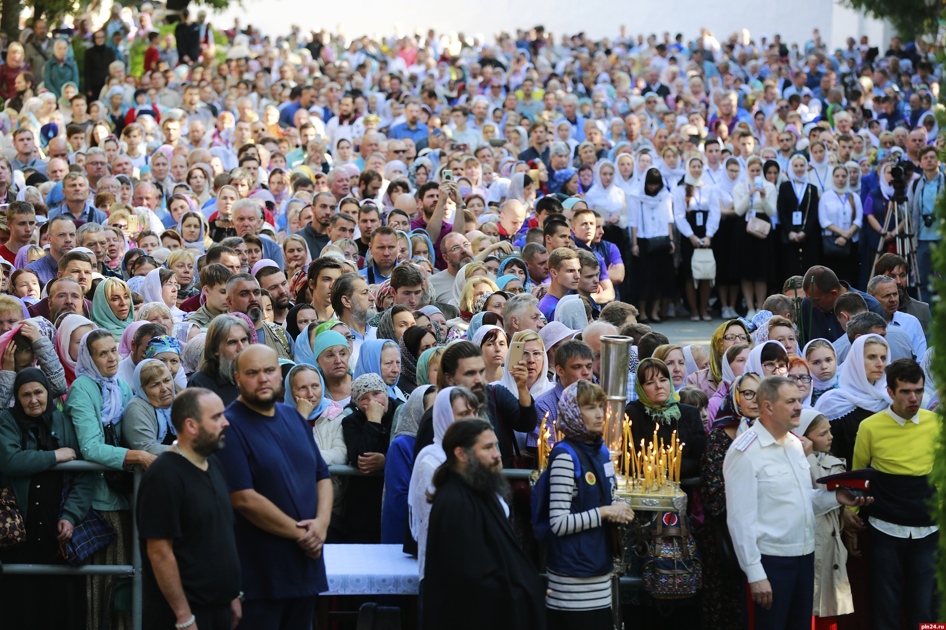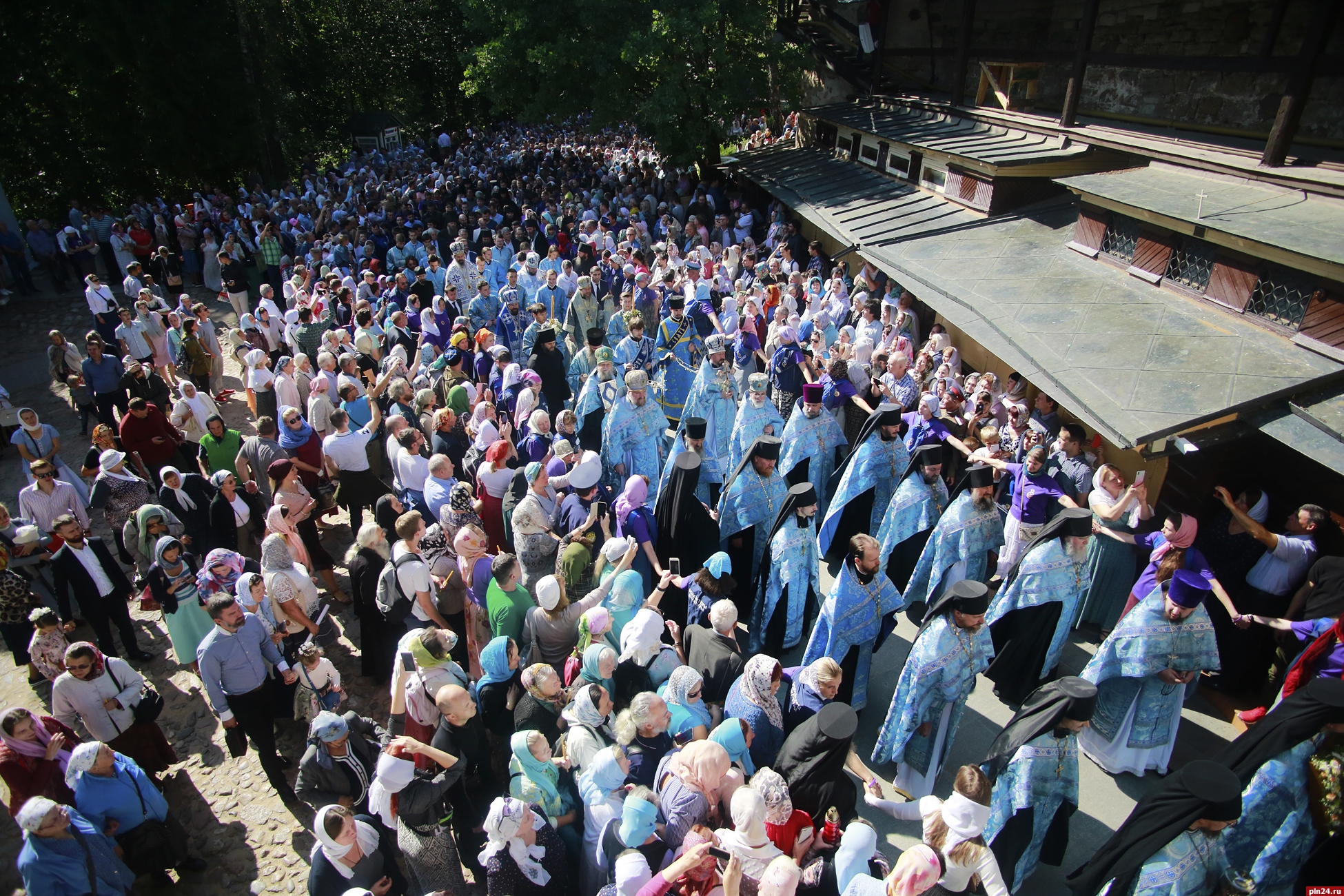 28 августа Божественную литургию в монастыре возглавил митрополит Волоколамский Иларион, который 40 лет назад начинал свой духовный путь именно здесь, в обители. Об этом напомнил многочисленным гостям митрополит Псковский и Порховский Тихон: «Здесь вы росли духовно, получая то, что невозможно постичь ни в светских, ни в духовных заведениях - личный опыт Богообщения. Мы очень рады, что вы спустя много десятилетий вернулись сюда, и молим Пресвятую Богородицу, чтобы Она в этот особый день дала вам особые силы, радость, мир, - все то, что так изобильно дарует пречистая Богородица всякому искреннему сердцем и приходящему к ней».