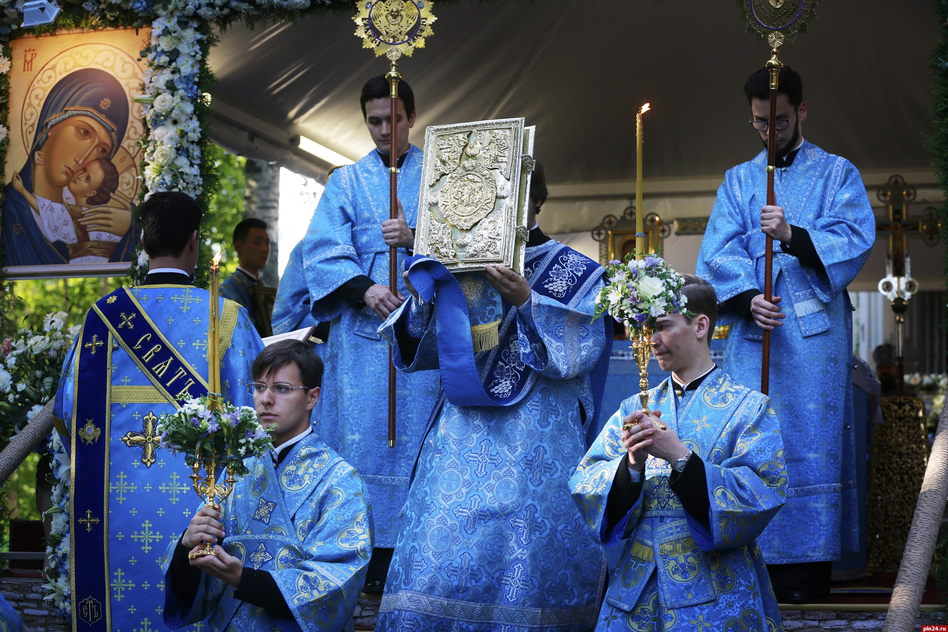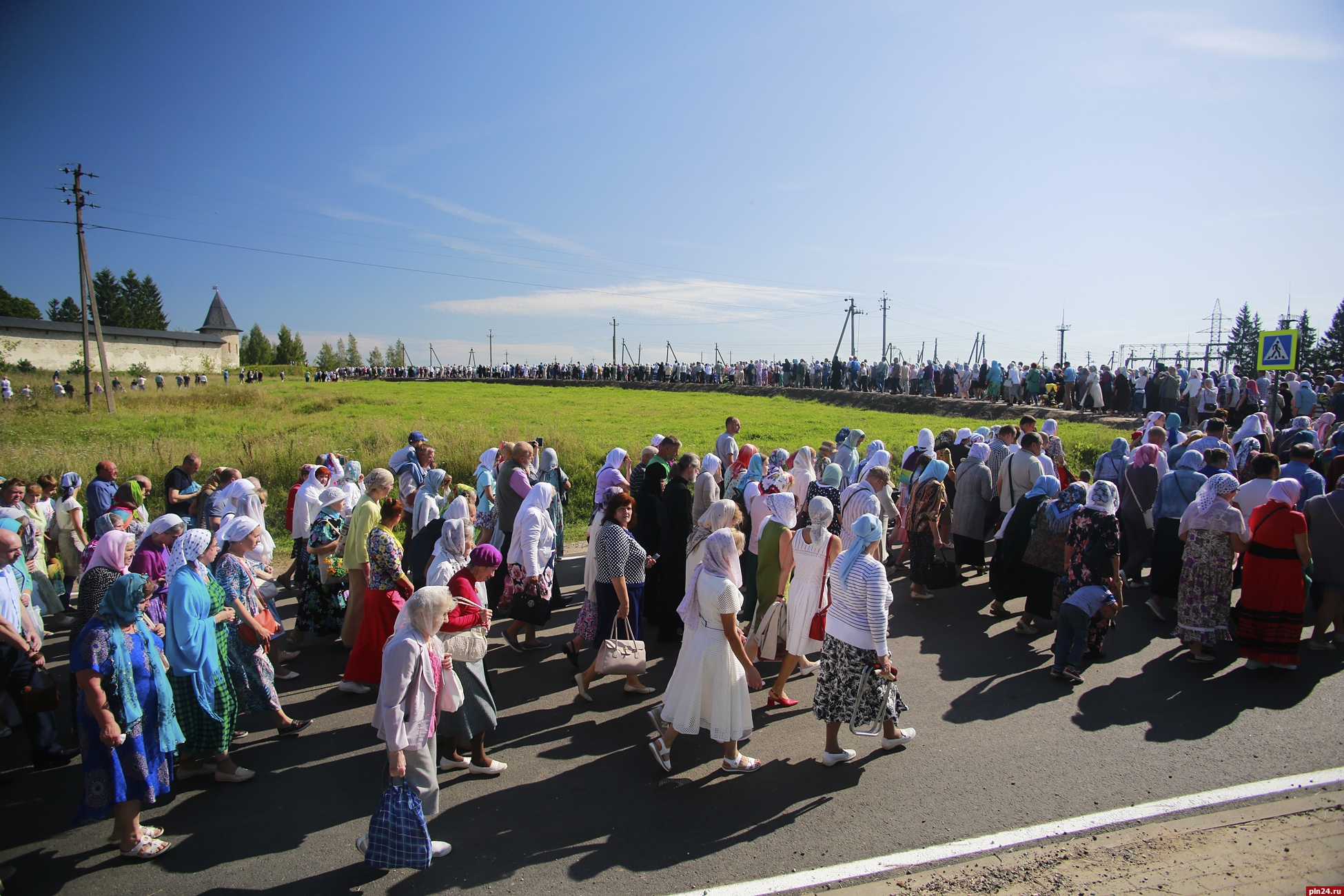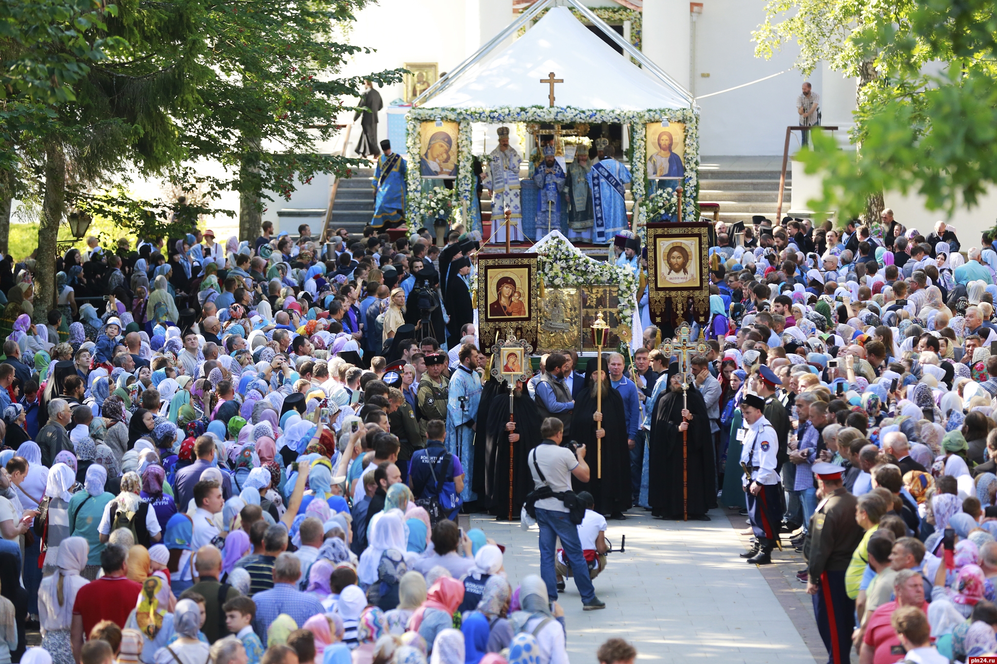 28 августа Божественную литургию в монастыре возглавил митрополит Волоколамский Иларион, который 40 лет назад начинал свой духовный путь именно здесь, в обители. Об этом напомнил многочисленным гостям митрополит Псковский и Порховский Тихон: «Здесь вы росли духовно, получая то, что невозможно постичь ни в светских, ни в духовных заведениях - личный опыт Богообщения. Мы очень рады, что вы спустя много десятилетий вернулись сюда, и молим Пресвятую Богородицу, чтобы Она в этот особый день дала вам особые силы, радость, мир, - все то, что так изобильно дарует пречистая Богородица всякому искреннему сердцем и приходящему к ней».