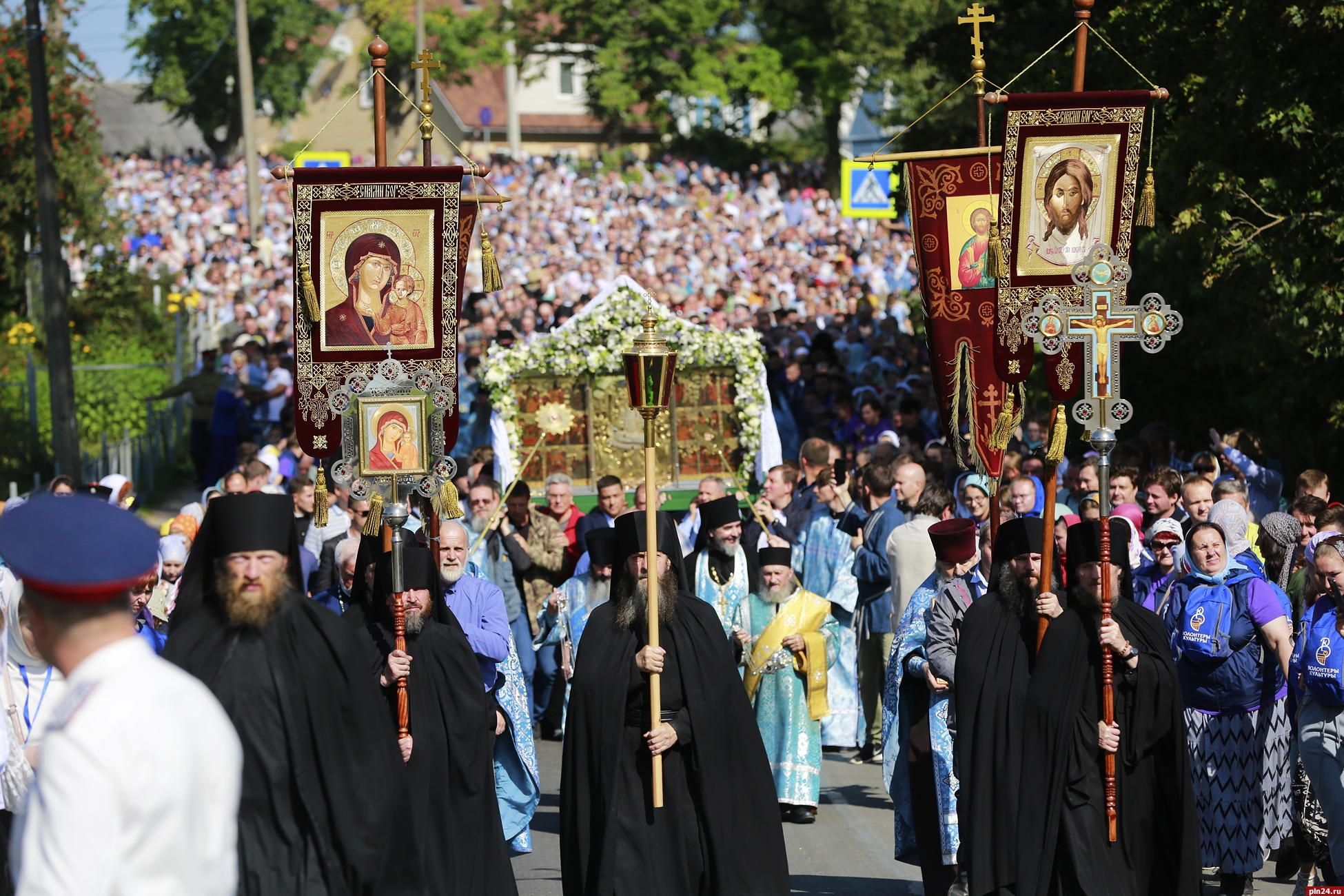 Слышим эстонскую речь, спрашиваем на русском - авось поймут: а вы какими судьбами в Печорах сегодня? Действительно, гости приехали из Прибалтики. «Я знаю этот день, очень давно, в детстве я была здесь на таком празднике, - рассказывает одна из женщин. - Молодежь сейчас смотрит на веру по-другому, я тоже тогда думала по-другому. Я видела на том давнем празднике, как делают ковер из цветов, но не знала, что с этого коврика надо взять хотя бы один цветочек и засушить его - как благословение. Очень красивый праздник, очень хорошие впечатления! Он хотя и проходит в середине недели, но все равно народу много, день хороший, погода замечательная!»