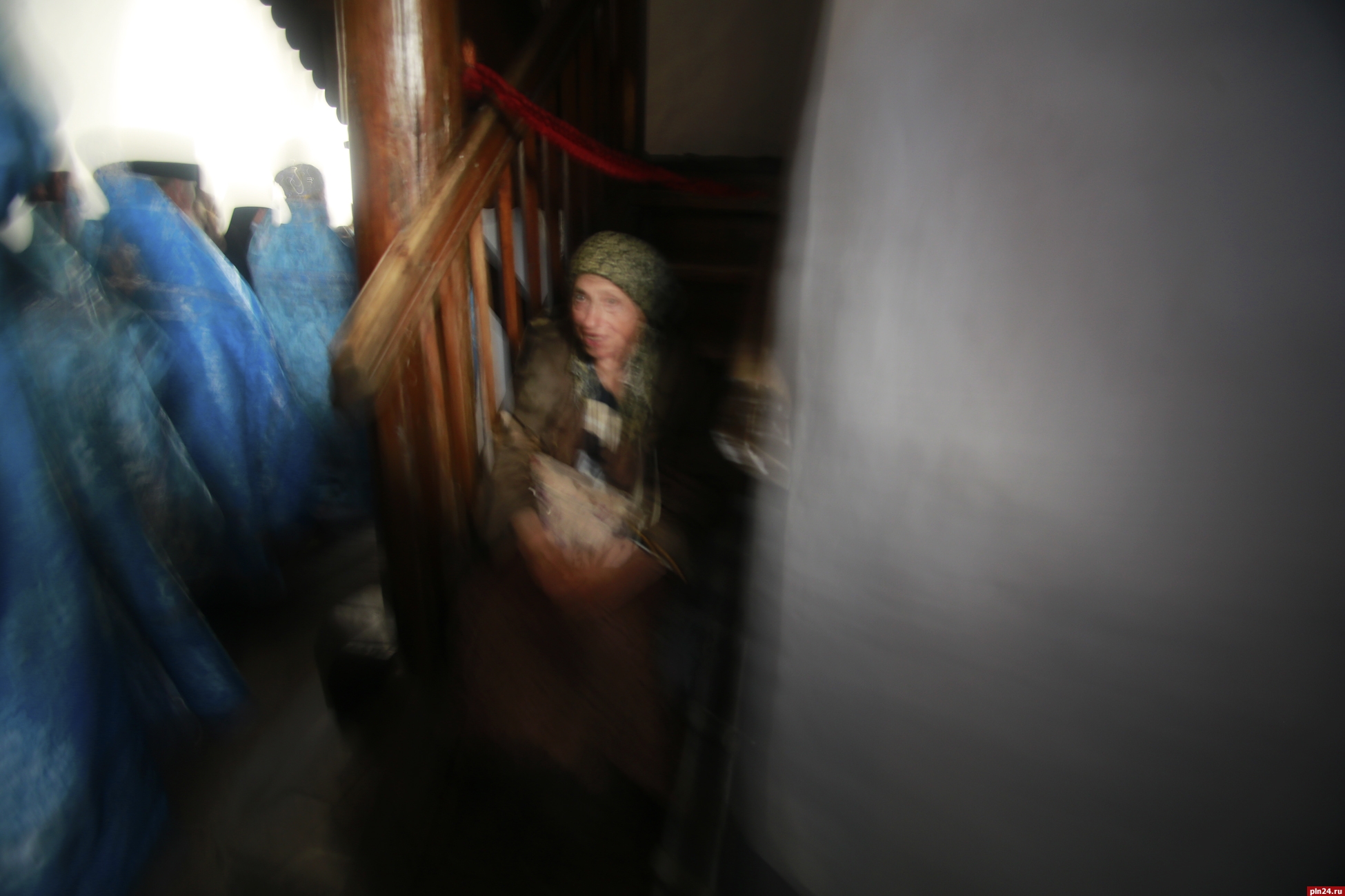 Идем дальше. Девушки в фиолетовых футболках - тех самых, которые заметили туристы, - это участники проекта Министерства культуры РФ «Волонтеры наследия», реализующегося сейчас на территории Псковской области. Одна девушка приехала из далекой Читы, другая - из Санкт-Петербурга, сидят на камушках, болтают как закадычные подружки, знающие друг друга сто лет. Делятся впечатлениями: «Мы помогаем в реставрации и благоустройстве. На богослужении наши волонтеры помогали создавать живую цепь, чтобы служба и крестный ход прошли организованно. Для нас неожиданно, что действительно очень много людей приехало на праздник!»