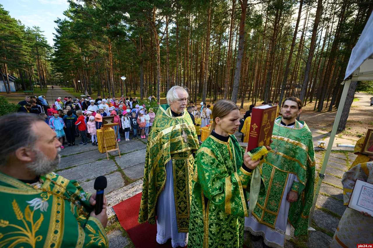 Божественную литургию совершили руководитель епархиального отдела по взаимодействию со здравоохранением иерей Евгений Ковалев, настоятель храма святителя Луки Крымского при Псковской городской больнице иерей Василий Лупаков, настоятель храма Рождества Христова в Майском города Печоры иерей Сергий Тараканов, клирик храма Покрова Пресвятой Богородицы (от Торгу) на подворье Псково-Печерского монастыря в городе Пскове диакон Артемий Шевчук. Таинство исповеди для маленьких воспитанников лагеря и их вожатых совершали протоиерей Алексий Воронюк, иерей Михаил Аршанов, иеромонах Анастасий (Байков), иерей Антоний Лунгу.