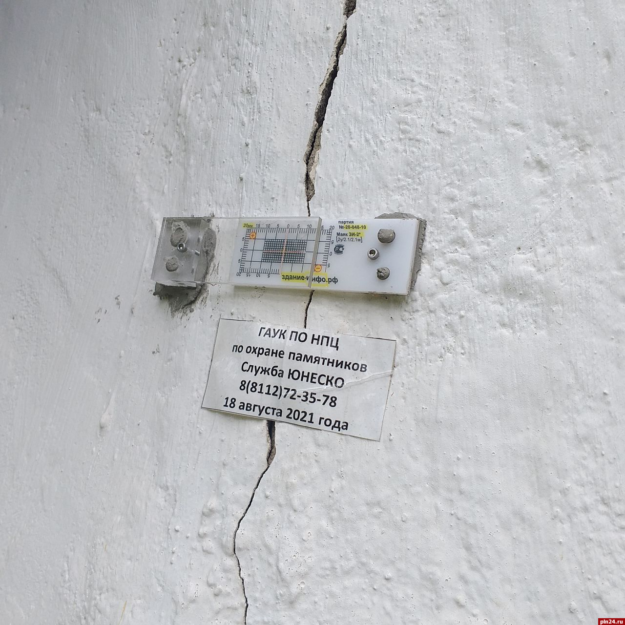 Специалисты заметили, что зондаж на месте соединения паперти и четверика свидетельствует о том, что пристройка к храму сделана позднее. На месте соединения двух объемов установлены маяки, которые фиксируют движение трещины.