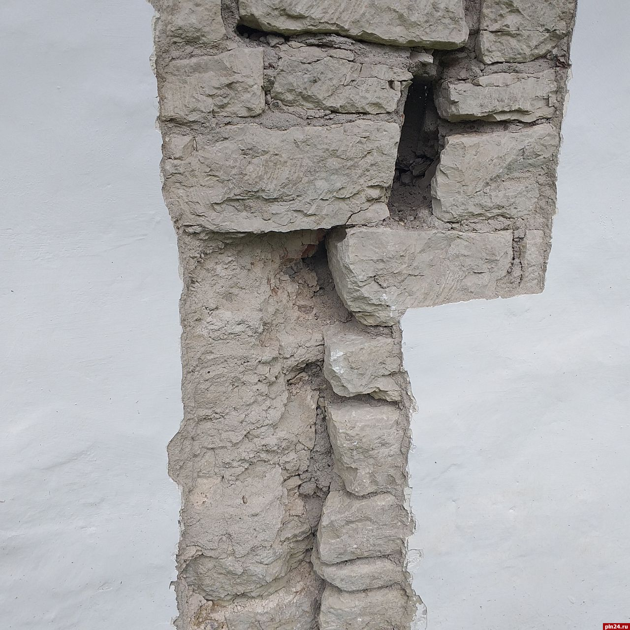 «Фотофиксация представляет фрагменты зондажей наружных стен храма. На северной стене благодаря зондажу можно проследить, как древние зодчие изменяли пластику стены, создавая рельеф. Наращивался слой извести или в более позднее время - штукатурки. Арматурой служили кованые гвозди, вбитые между камней кладки. Предположительно, XVIII-XIX веков», - рассказали специалисты.
