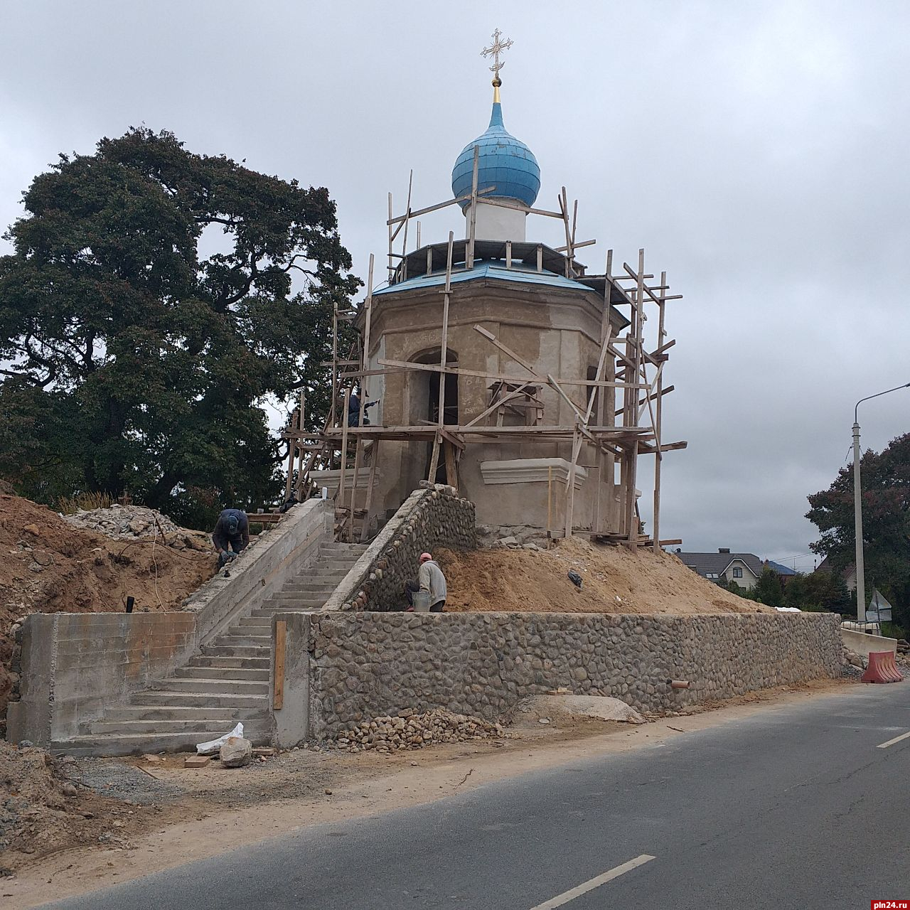 Закончено строительство лестницы, которая ведет к часовне Четырех Святителей XVIII века у Снетогорского монастыря в Пскове. Идет облицовка подъема известняковым камнем. Об этом сообщается в Telegram-канале АНО «Возрождение объектов культурного наследия в городе Пскове (Псковской области».