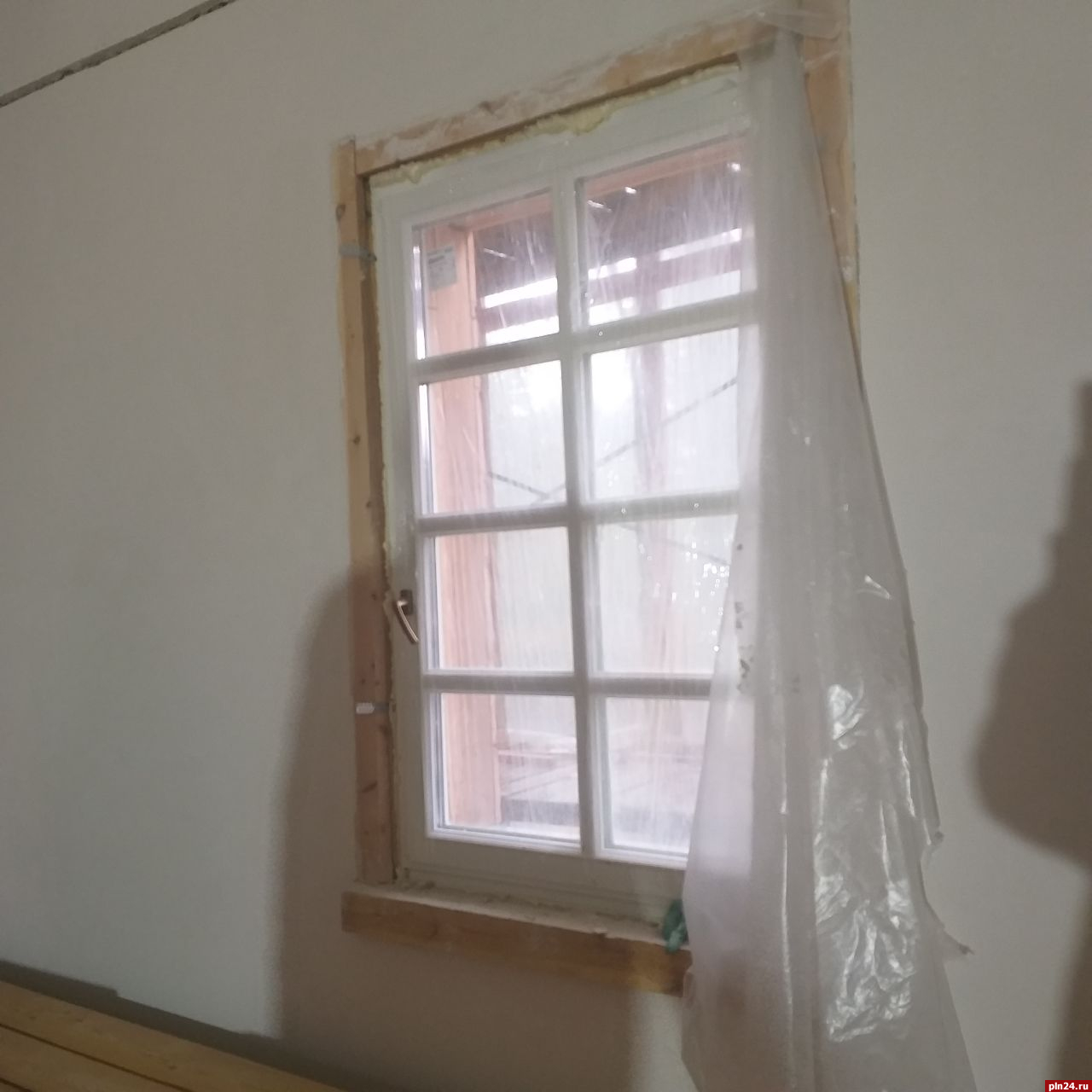 В настоящий момент устанавливаются оконные наличники и доборы к ним внутри и снаружи здания.