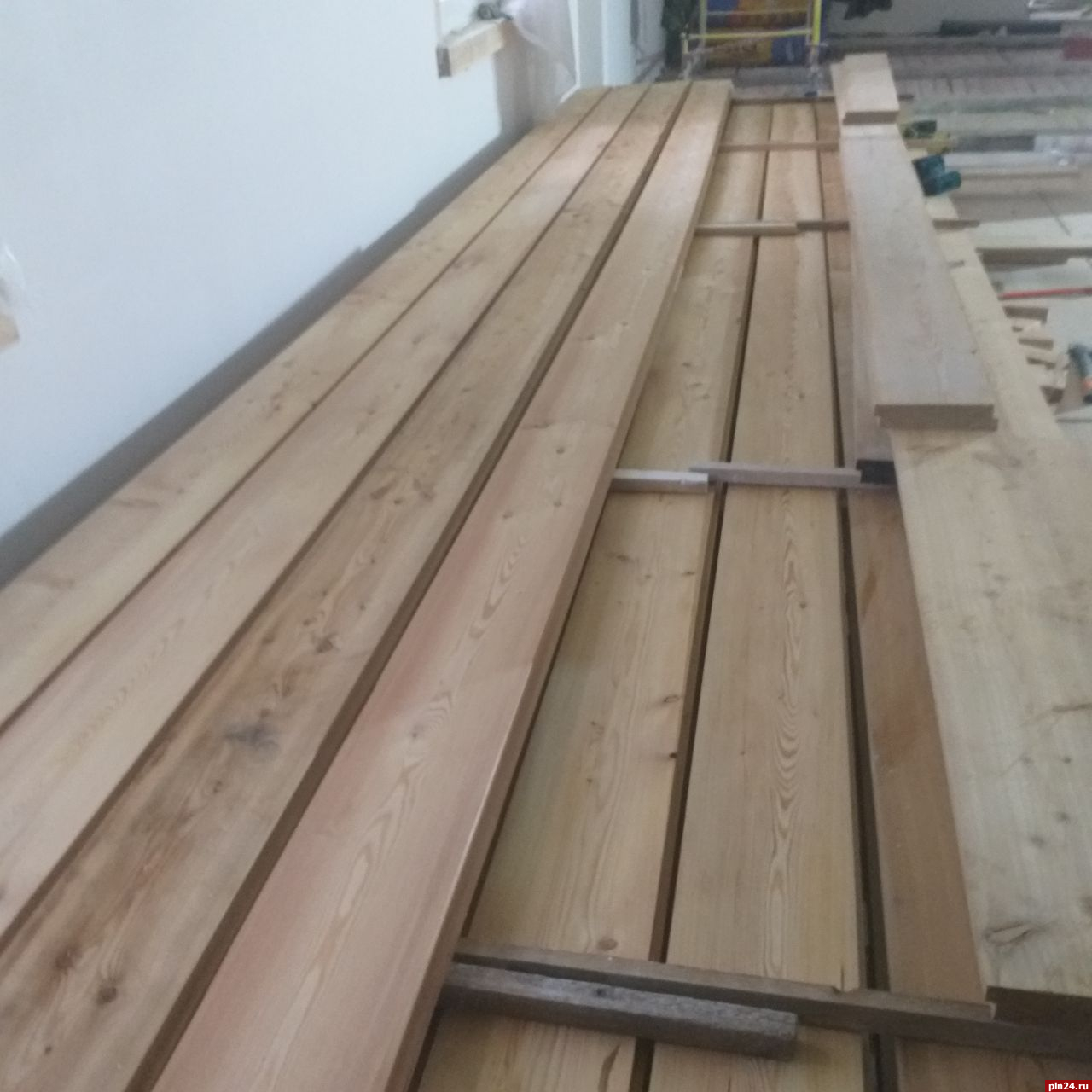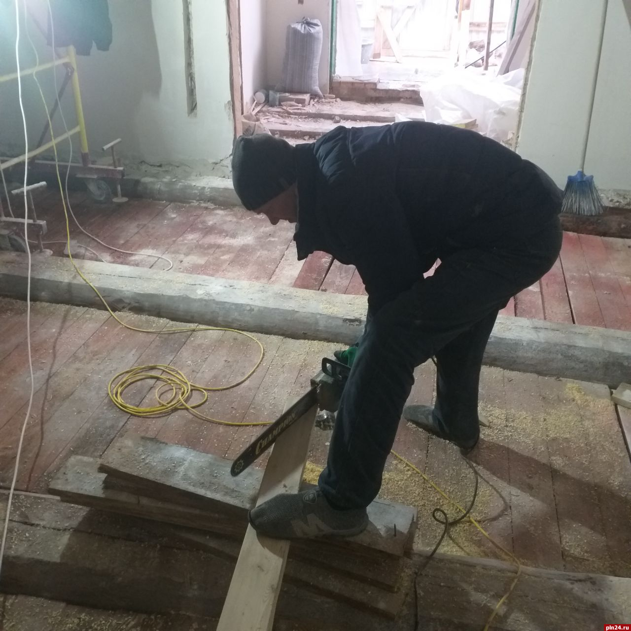 «Устройство современных коммуникаций - одна из задач проекта ремонтно-реставрационных работ на памятнике деревянного зодчества. Рабочие проложили штробы для будущей проводки», - рассказали специалисты.