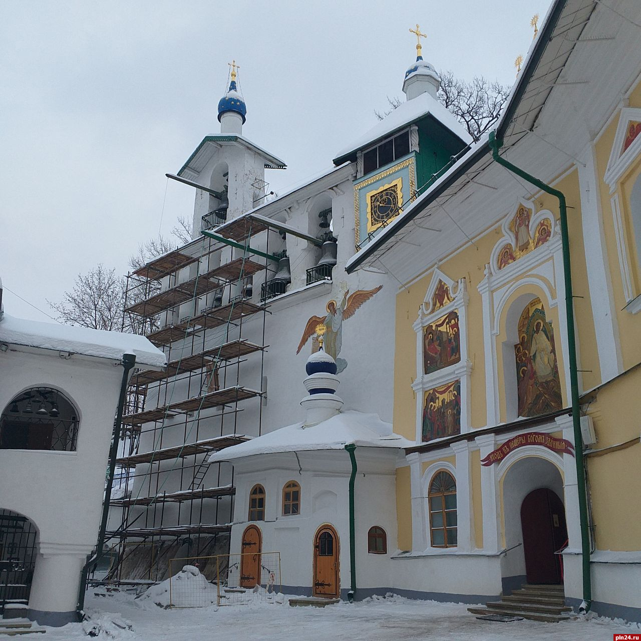 «Реставрация Большой звонницы началась в Псково-Печерском монастыре. Проект реставрации прошел все необходимые экспертизы. Идет установка лесов», – отметили специалисты.