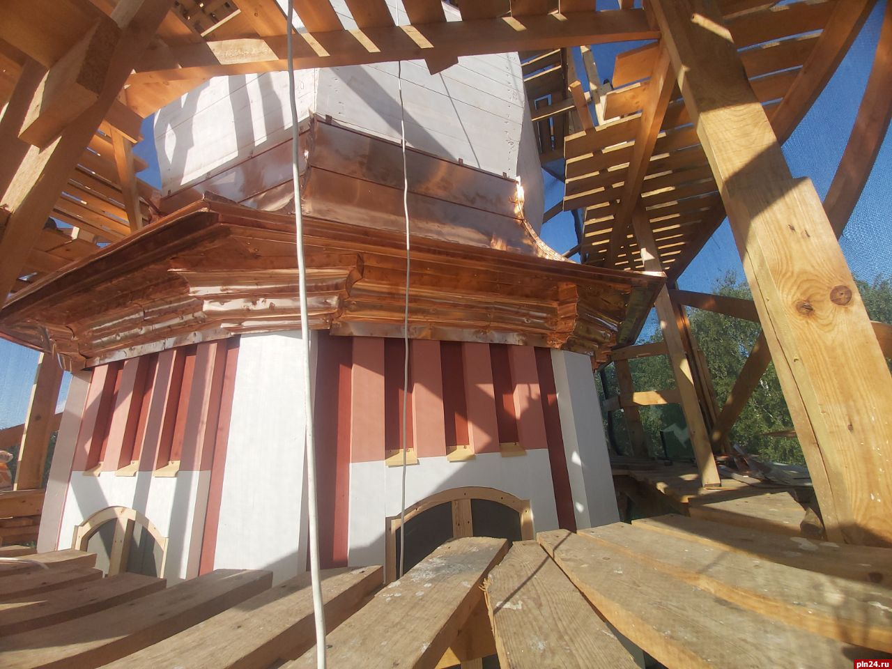«Завершены работы по укреплению фундаментов, стен и оштукатуриванию фасадов. К празднику Успения Богородицы фасады будут отреставрированы полностью», – рассказали реставраторы.