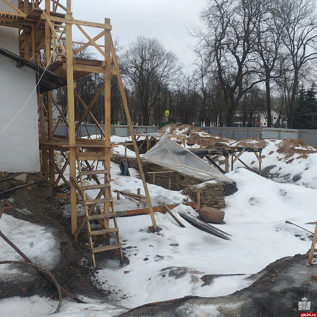 Одним из ключевых этапов работ является укрепление барабана купола, для чего и был оборудован специальный тепляк, позволяющий проводить необходимые работы вне зависимости от погодных условий. Параллельно ведется понижение уровня грунта вокруг постройки до исторической отметки.