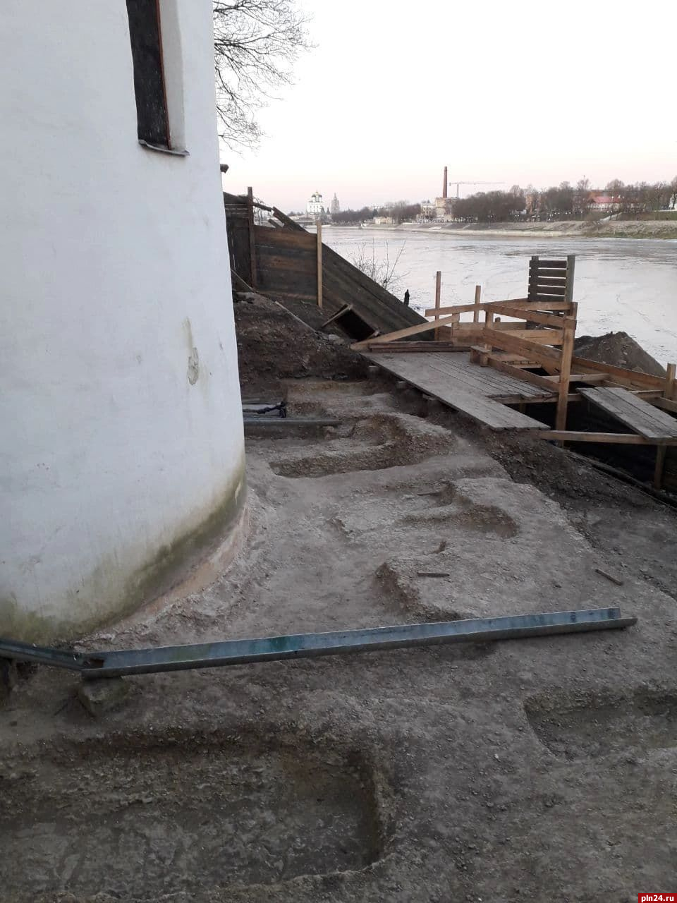 Раскопки проводились на участках проектирования системы водоотведения Спасо-Преображенского собора Мирожского монастыря.