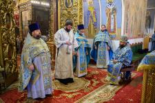 Его Высокопреосвященству сослужили: секретарь Псковского епархиального управления протоиерей Андрей Вахрушев, настоятель Свято-Троицкого кафедрального собора города Пскова иерей Александр Короплясов с соборным духовенством, благочинный храмов города Пскова протоиерей Андрей Большанин, насельники Свято-Успенского Псково-Печерского монастыря иеромонах Авенир (Осауленко) и иеромонах Анатолий (Подолян).