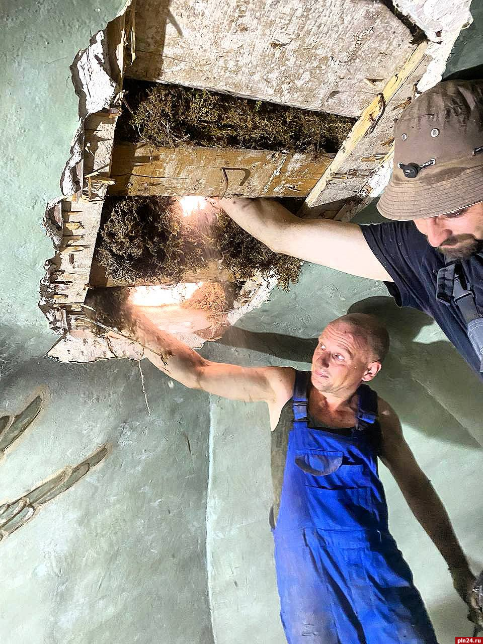 В ходе реставрации церкви Сорока Севастийских мучеников в Печорах обнаружены световые окна в барабане купола, сообщается в Telegram-канале автономной некоммерческой организации «Возрождение объектов культурного наследия в городе Пскове (Псковской области)».