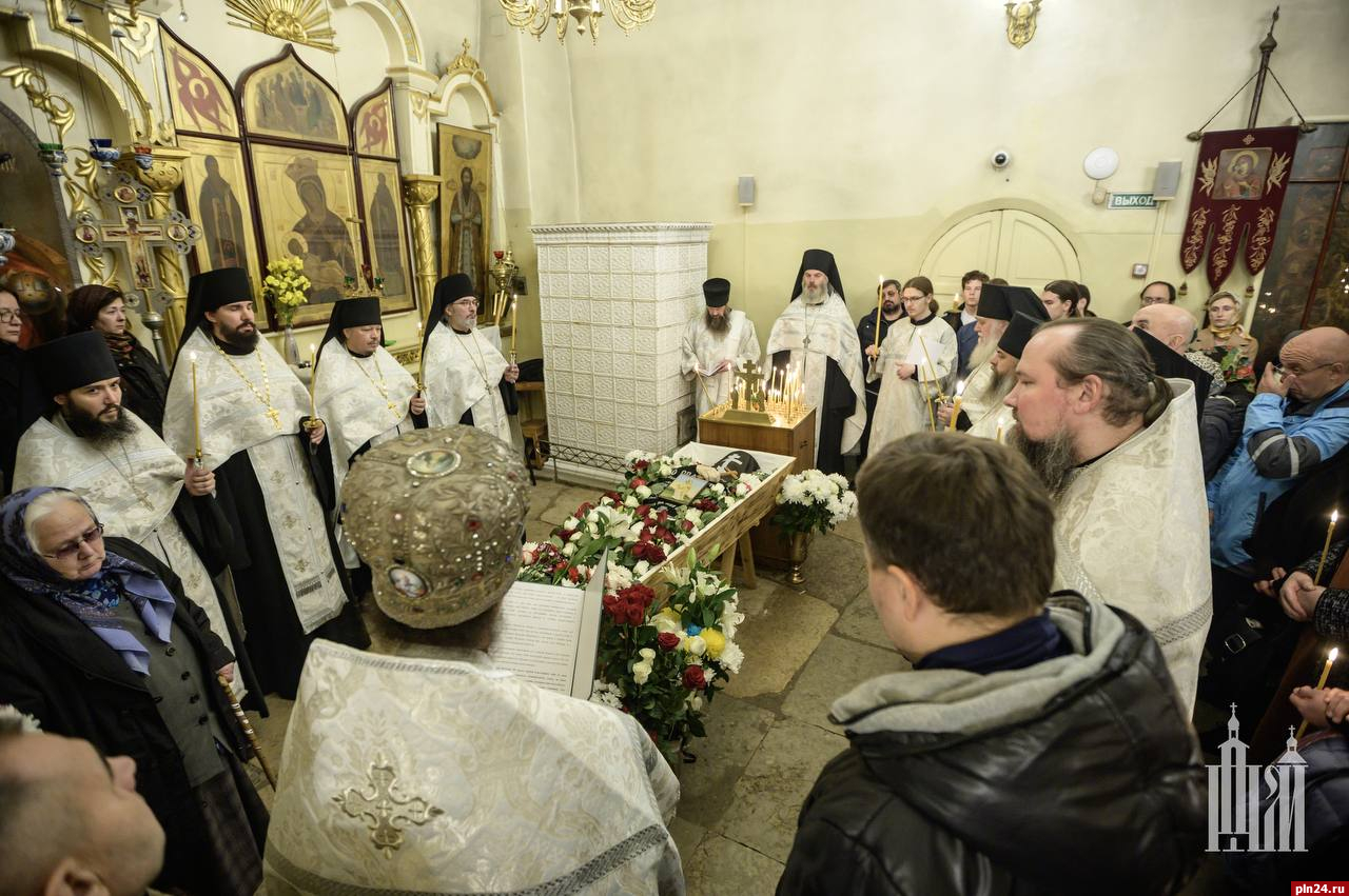 Молитвенно проститься с многолетним монастырским регентом монахом Исидором пришли насельники монастыря, студенты Псково-Печерской духованой семинарии и многочисленные паломники.