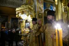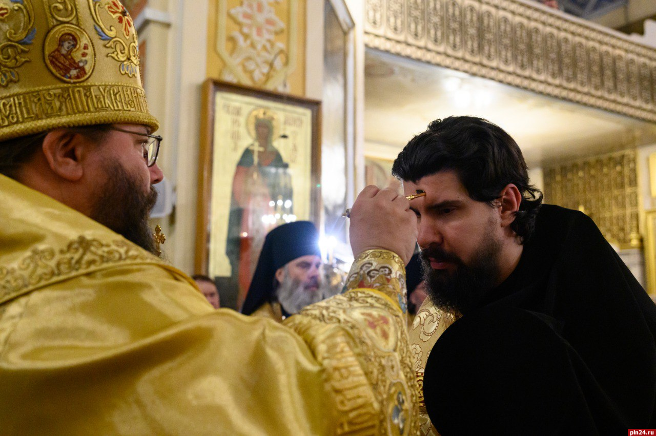 Его Высокопреосвященству сослужили: архимандрит Филарет (Кольцов) с братией в священном сане. Диаконский чин возглавил клирик Свято-Троицкого кафедрального собора города Пскова диакон Илья Медведев.
