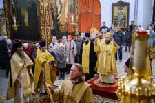 Песнопения Литургии исполнил Архиерейский хор под управлением Марии Быковой. За богослужением молились прихожане кафедрального собора и паломники. За Литургией митрополит Матфей рукоположил насельника Савво-Крыпецкой обители иеродиакона Нила (Бурьевского) в сан пресвитера.